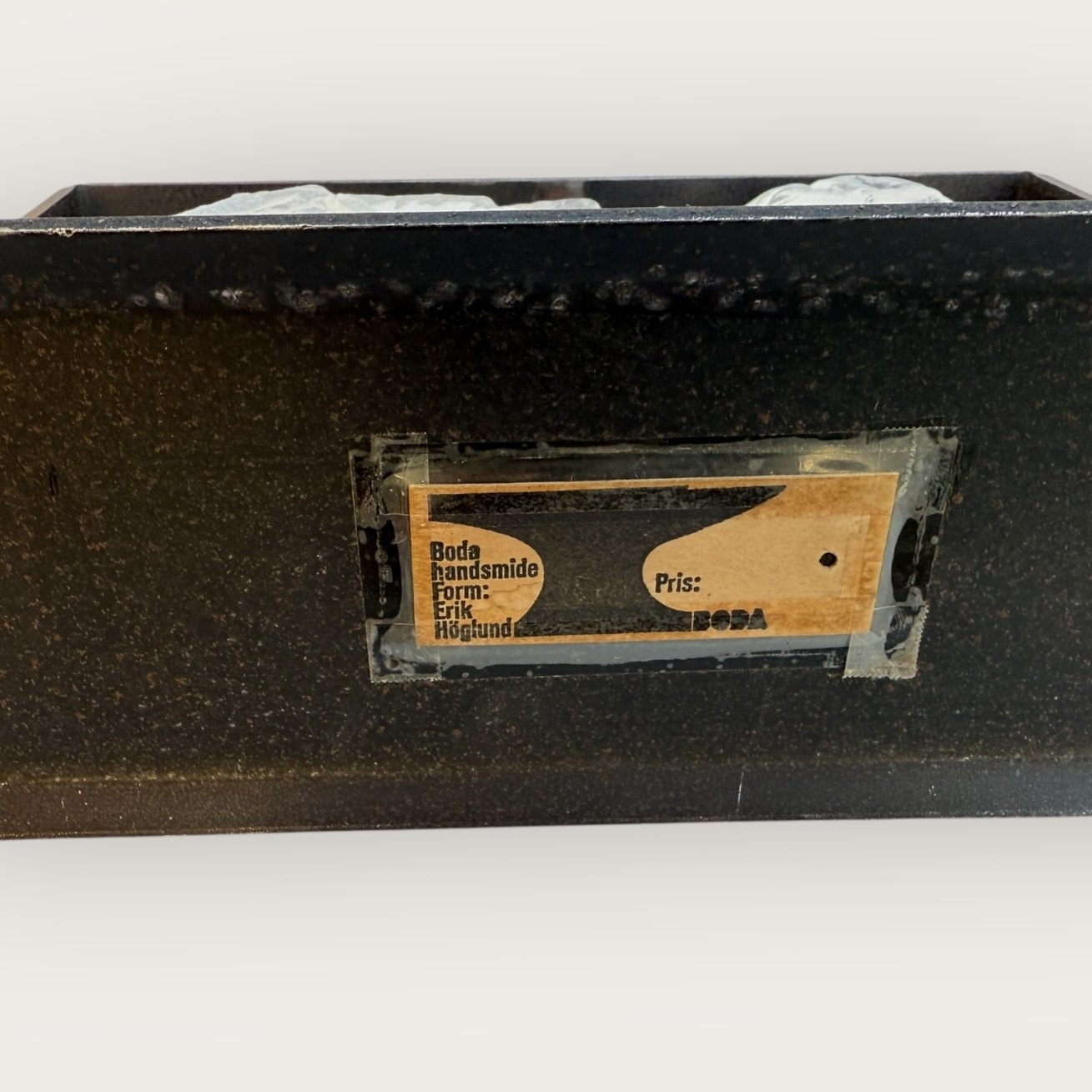 Kosta Boda, Erik Höglund, glasfigur af vædder monteret i metalramme; Mål: 25x33x11cm, * Lidt mærker i glasset omkring metalmonteringen (se foto) ellers rigtig fin stand*