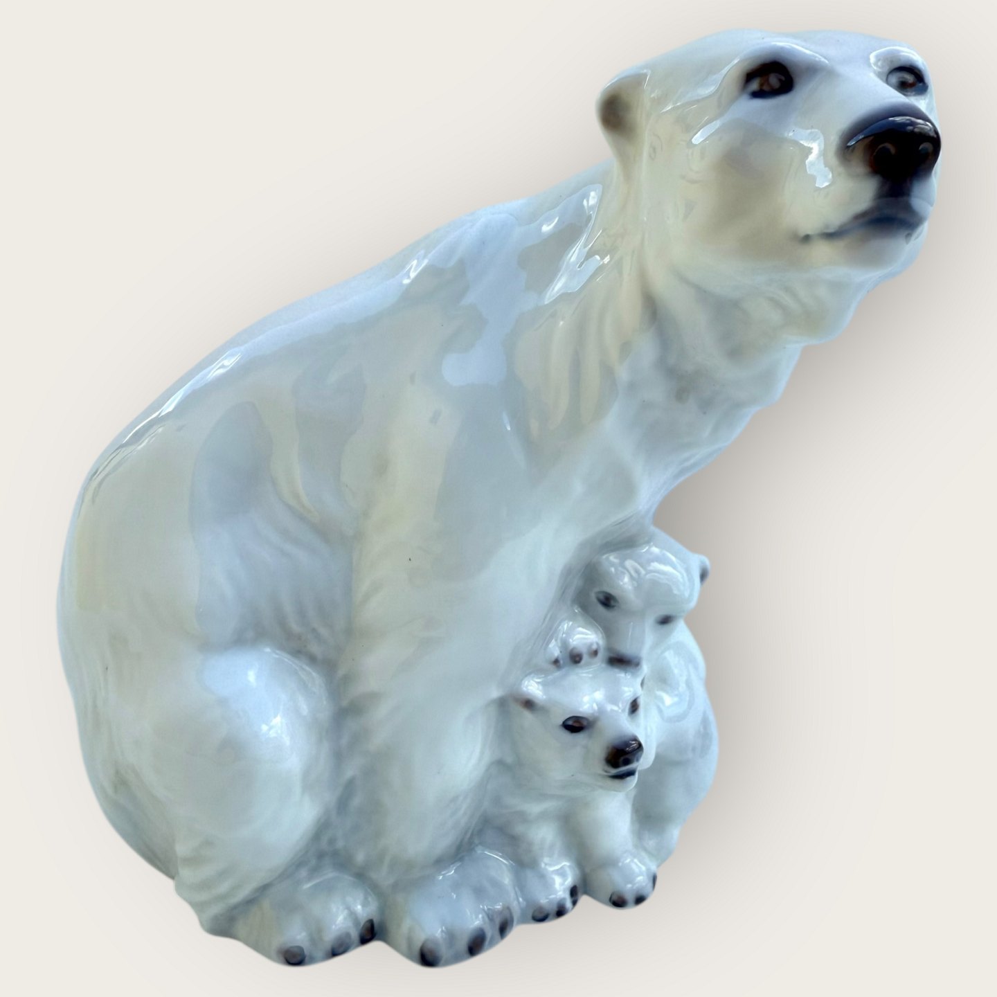 Lyngby Porcelæn, Isbjørn med unger, #98, 1.sortering, Mål ca. 17,5x17,5x10cm *fin stand*