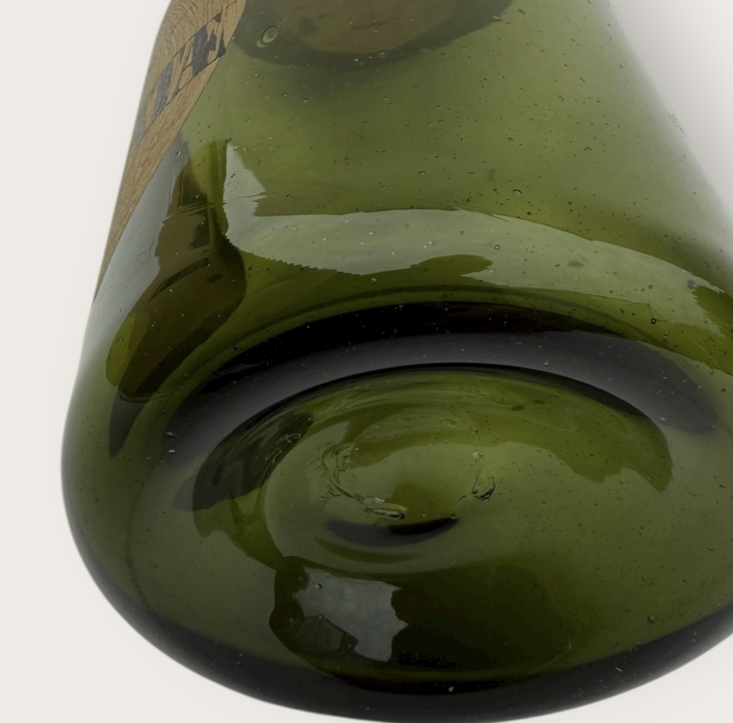 Holmegaard apotekerflaske fra 1985, Nuces Moschatæ (Muskatnød), Mål: 18x8cm, flaskerne er mundblæste kopier af originale gamle apotekerflasker, Signeret Hg85.
