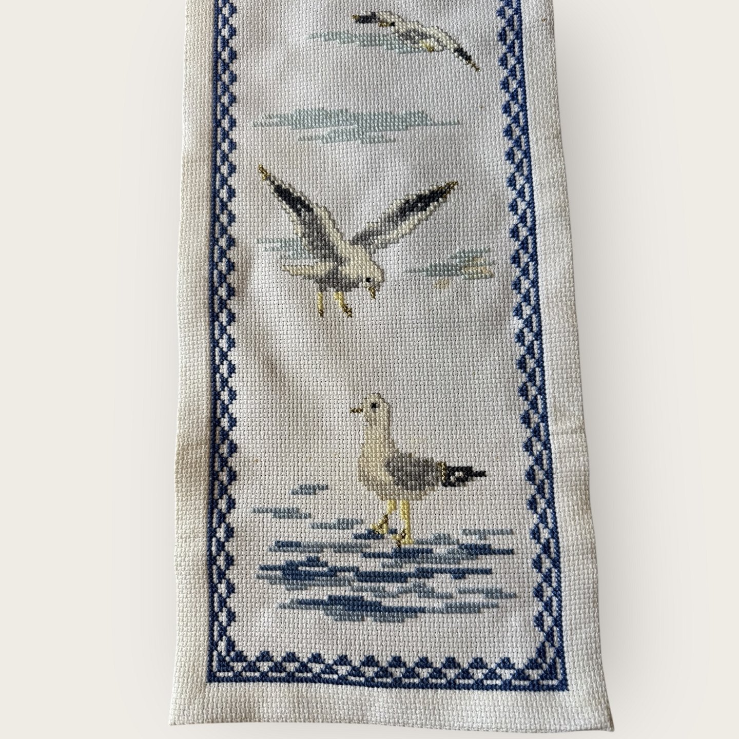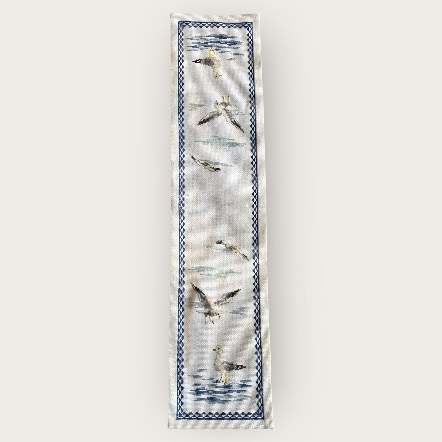 Håndsyet bordløber med mågemotiv, 90x20cm *fin stand*