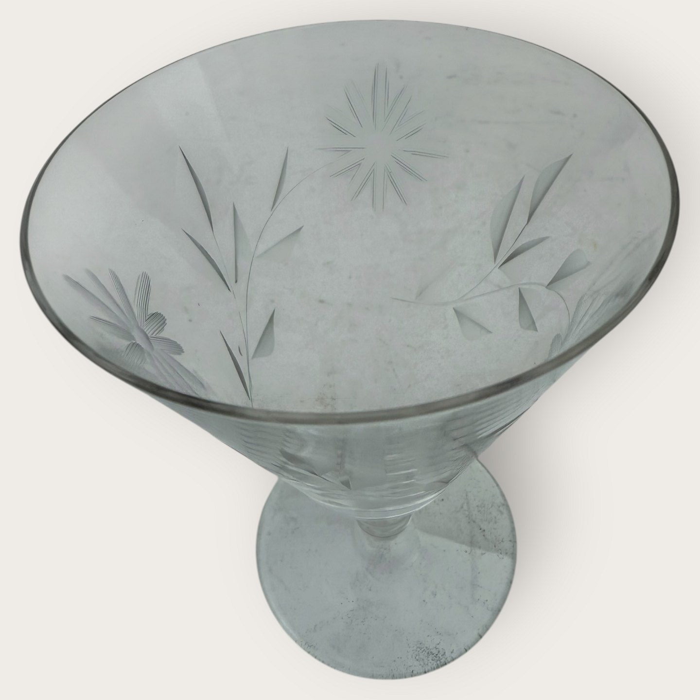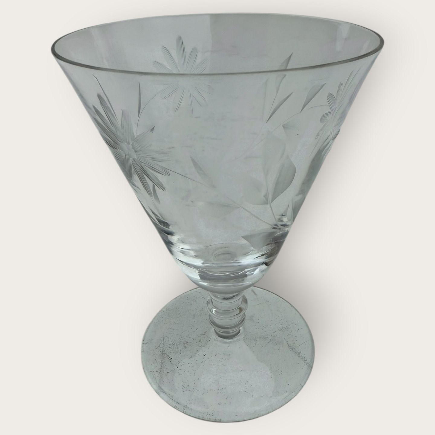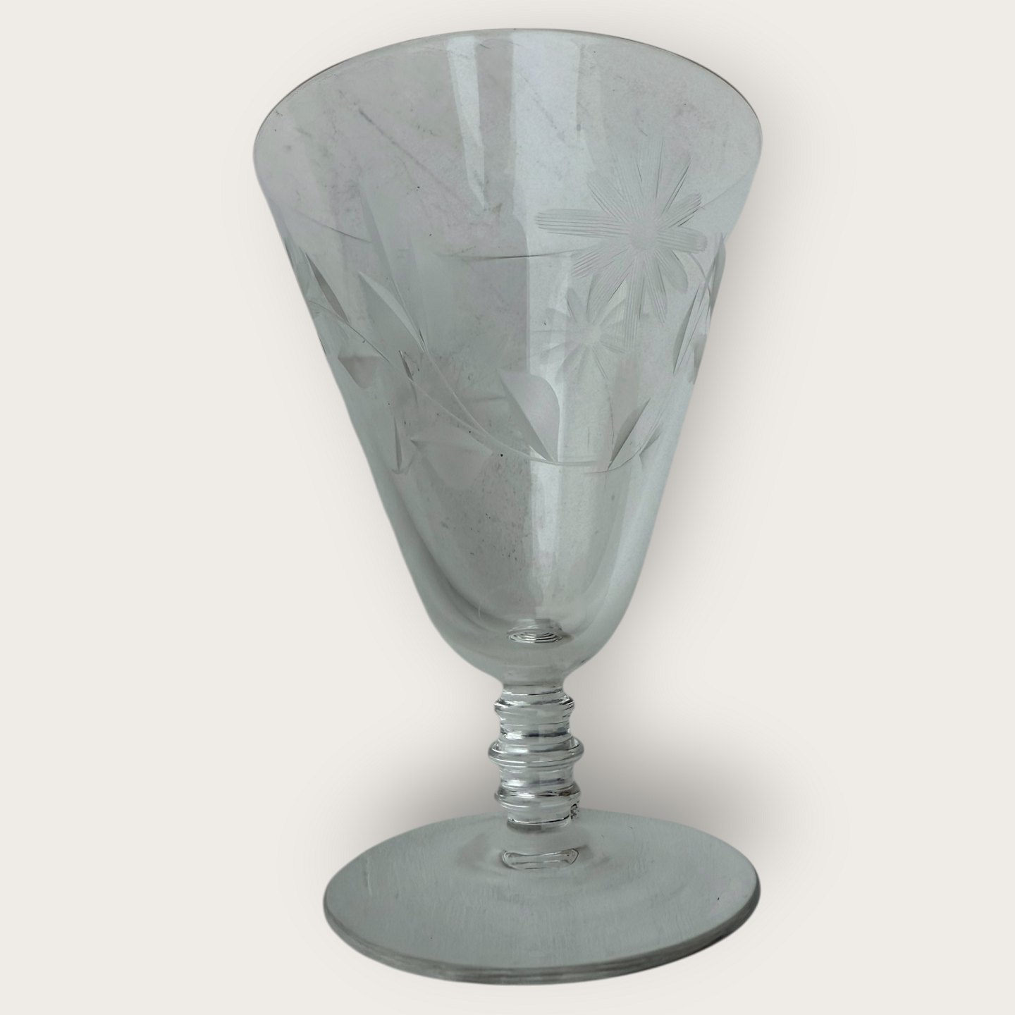 Rødvinsglas med blomsterslibninger, Højde 11,7cm, diameter 9cm *pæn stand*