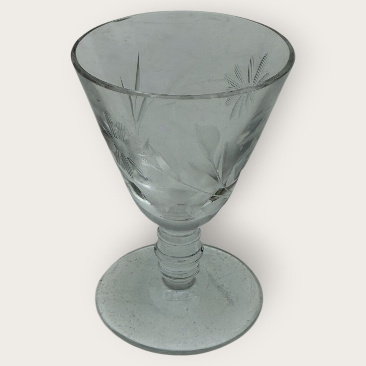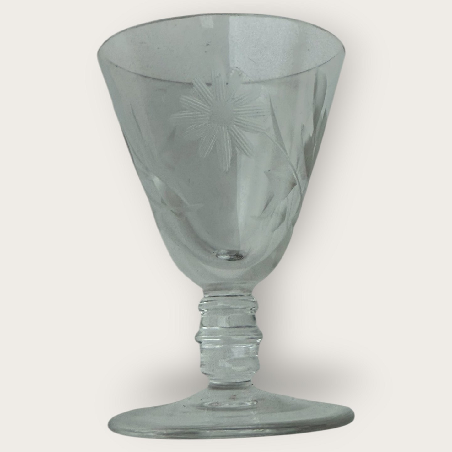 Snapseglas med blomsterslibninger, Højde 6,5cm, diameter 4,5cm *pæn stand*