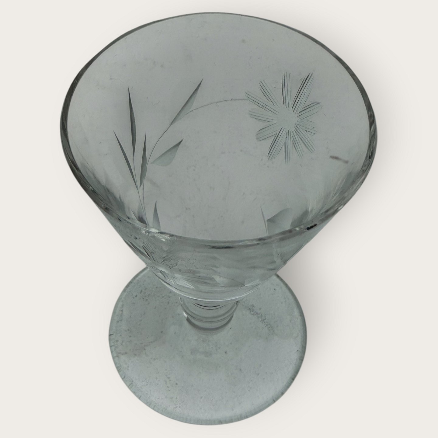 Hvidvins glas med blomsterslibninger *50kr