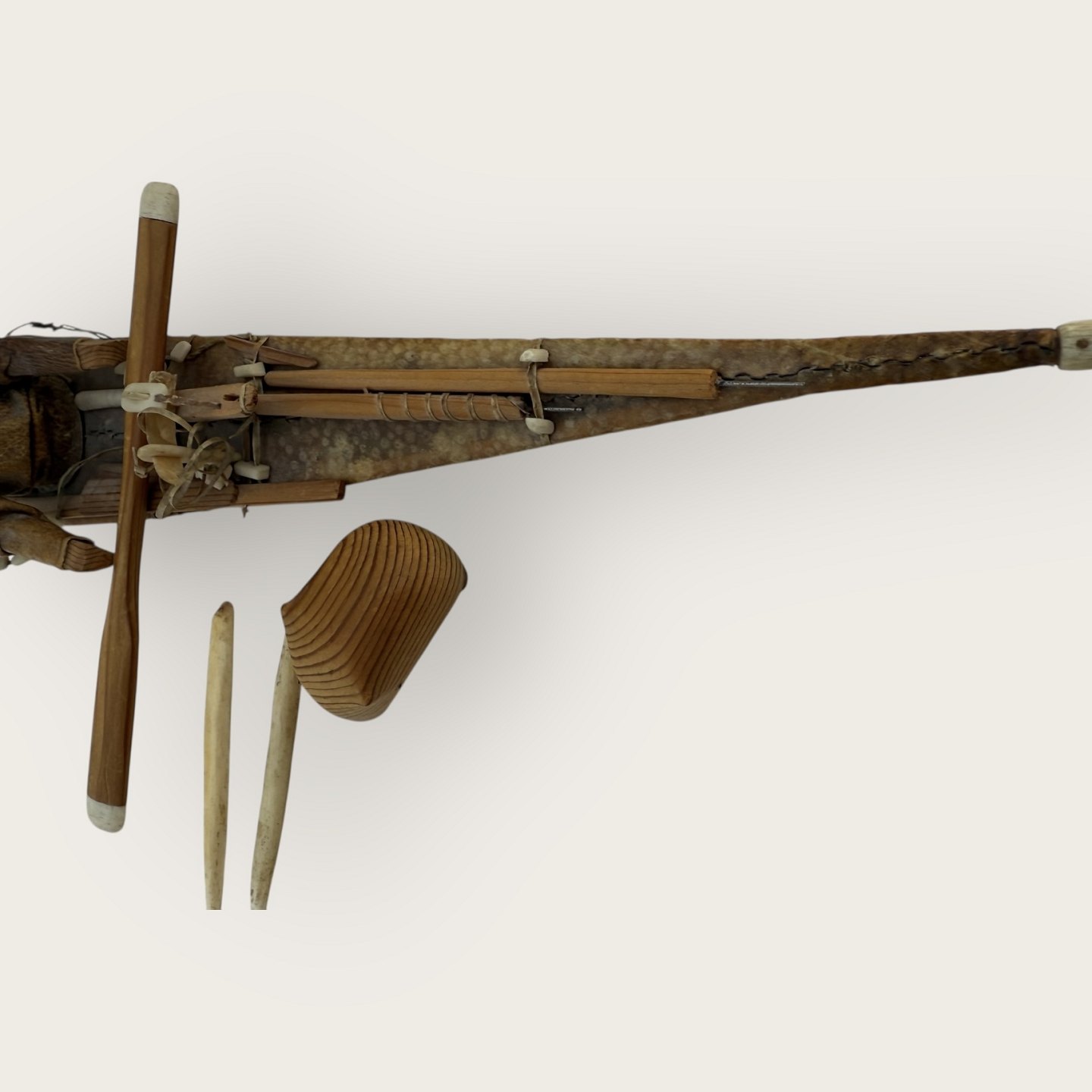 Grønland, stor kajakmodel i træ, ben og skind, 41cm lang *virkelig flot stand*