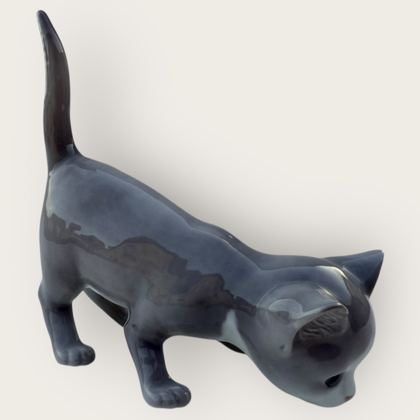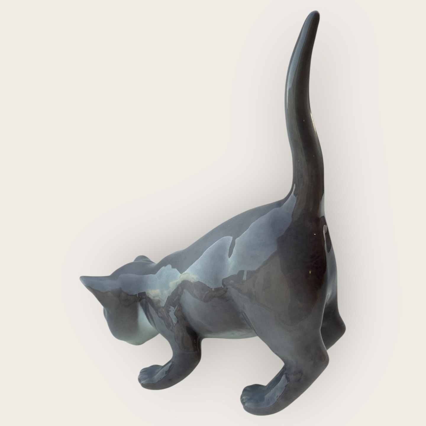 Bing & Grondahl, Gray cat with raised tail, # 2517, 1st grade, Dimensions approx. 12x13x6cm *Good condition*
