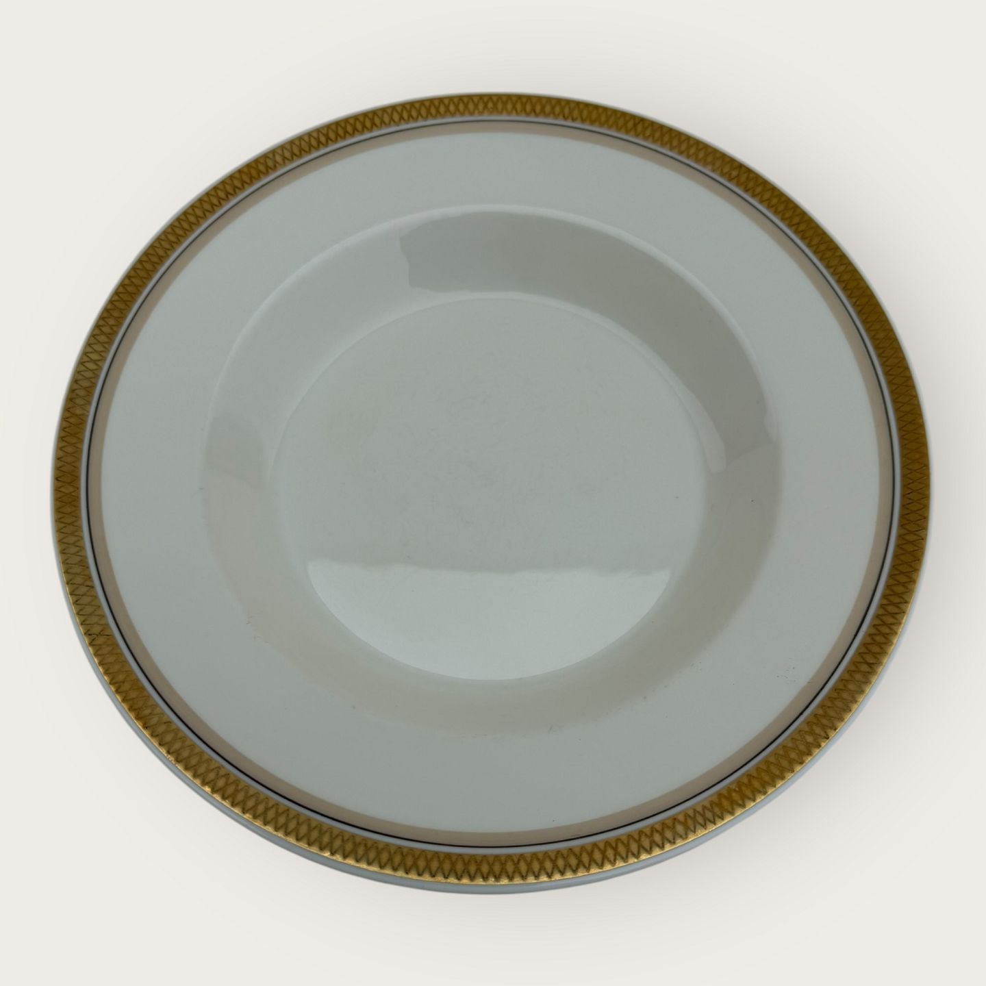 Royal Copenhagen, Liselund without decoration, # 1137/9587 (also known as 1173), large deep plate, 24.5cm in diameter, 1st grade *appears with slight discoloration on the gold edges, otherwise in good condition*