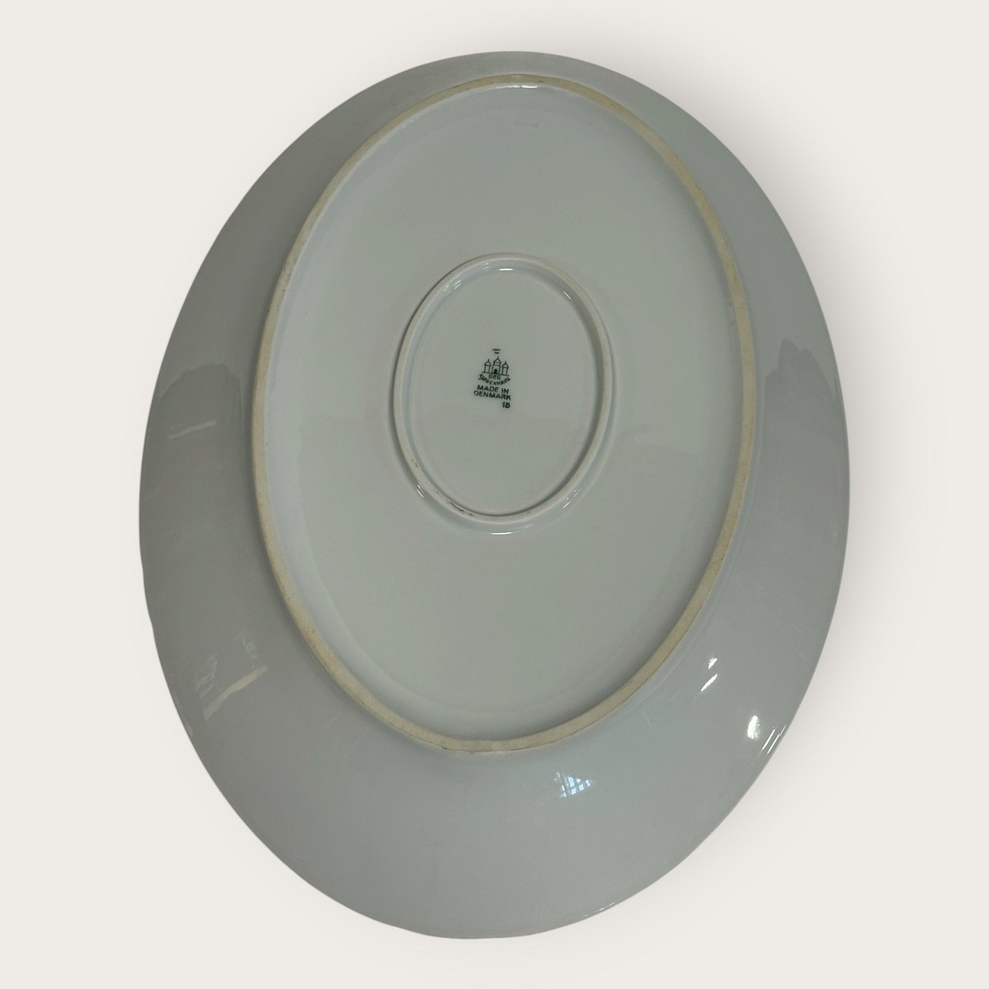Bing & Grøndahl, Aakjær, Hvid porcelæn med guldkant, Stort serverings fad # 15, 41x28,5cm, 1.sortering *Pæn stand*