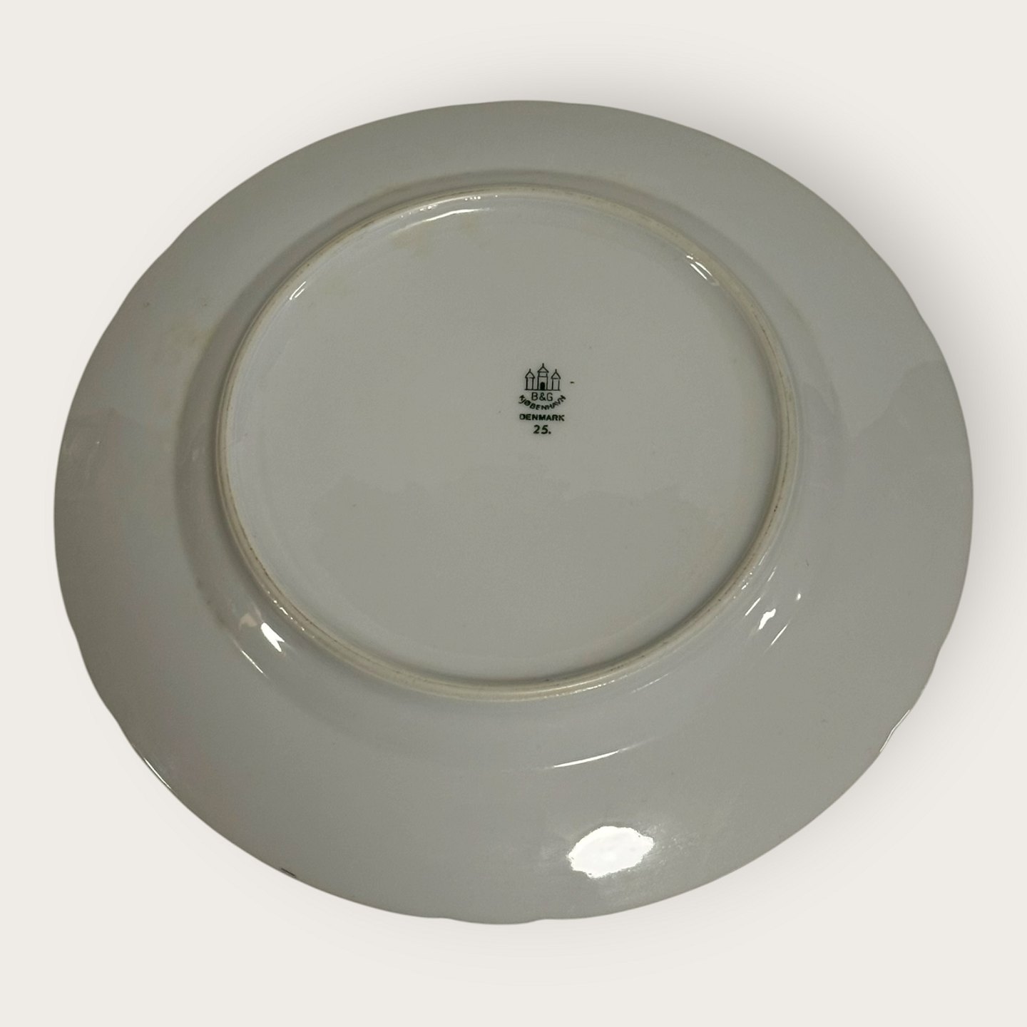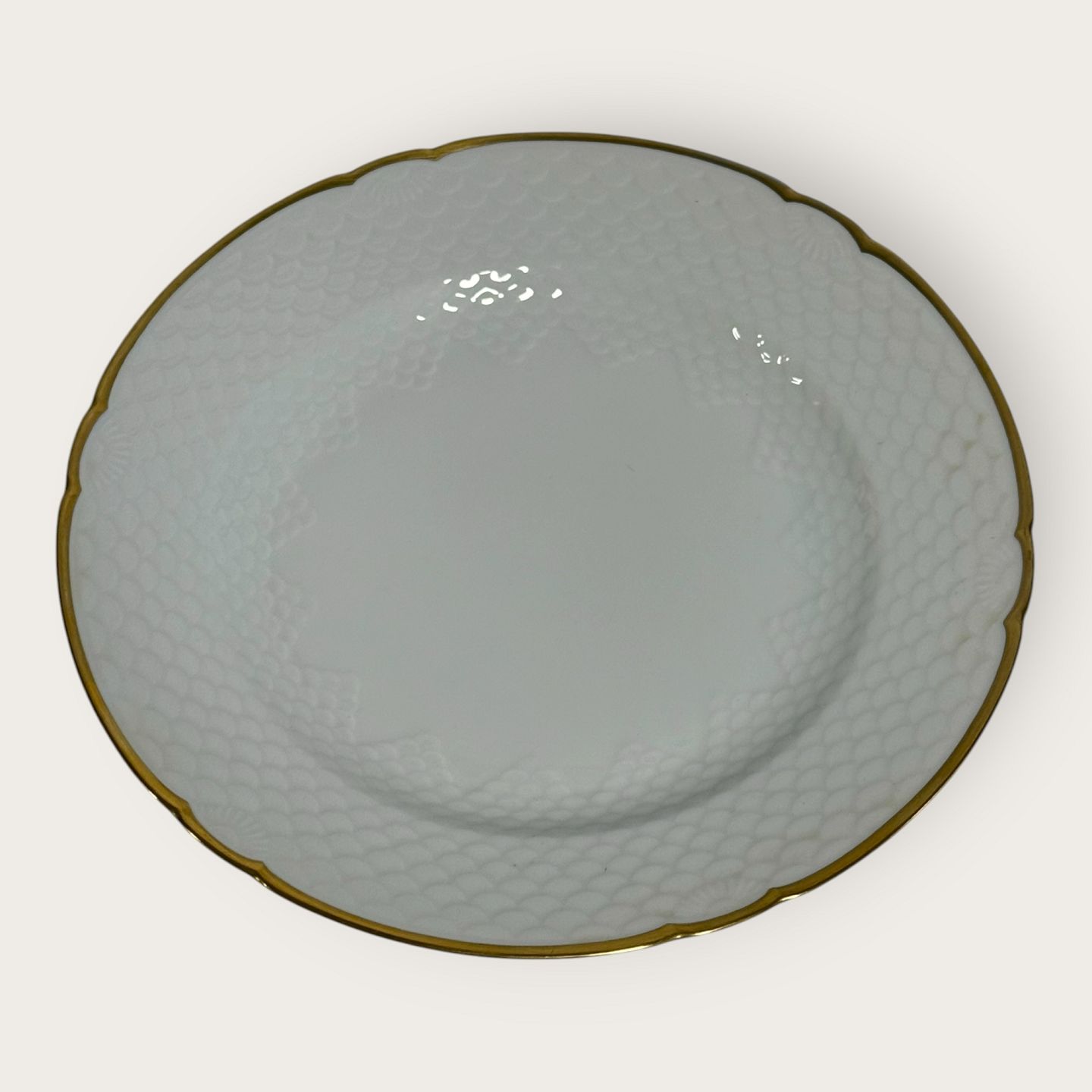 Bing & Grøndahl, Aakjær, Hvid porcelæn med guldkant, Middags tallerken # 25, 24,5cm i diameter, 1.sortering *Pæn stand*