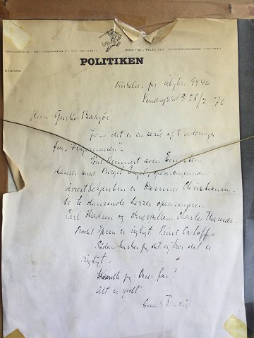 Bagpå kopi af brev fra Hans Bendix til Fru Gurli Baagøe i Birkelse 1970.