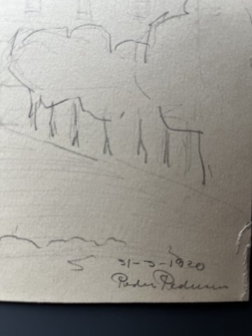 Peder Pedersen (20 årh): Rosenborg Slot 1920. Bly på papir. Sign.: Peder Pedersen Dateret - 31-3-1920 Bagpå - Stempel "Kunstakademiets Skoleraad" 25. Maj 1930. 26x21