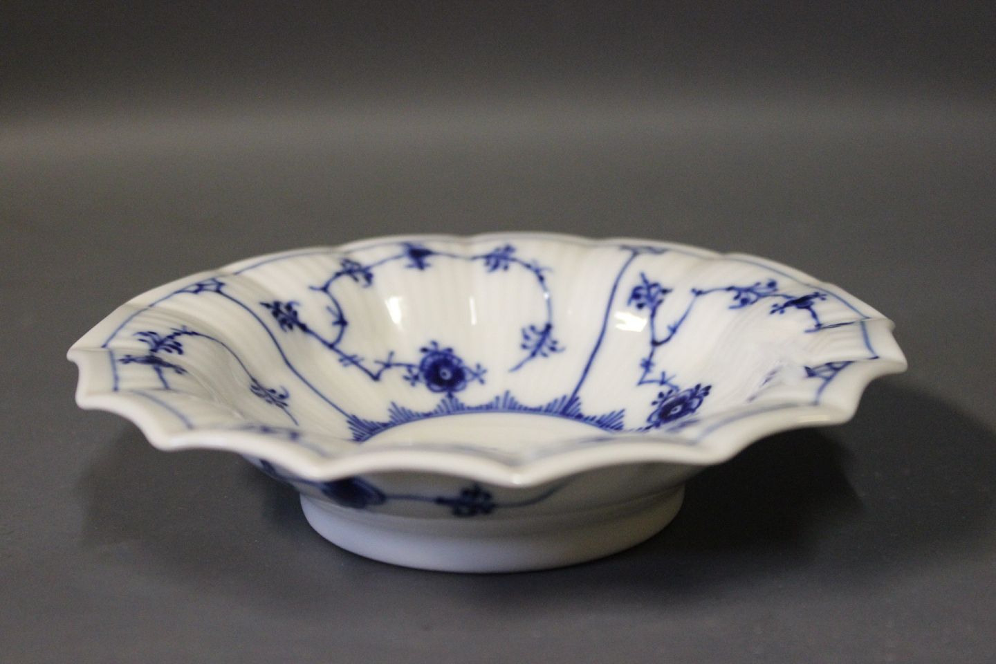 SolgtKgl. Musselmalet riflet lille skål med bølgekant #140.