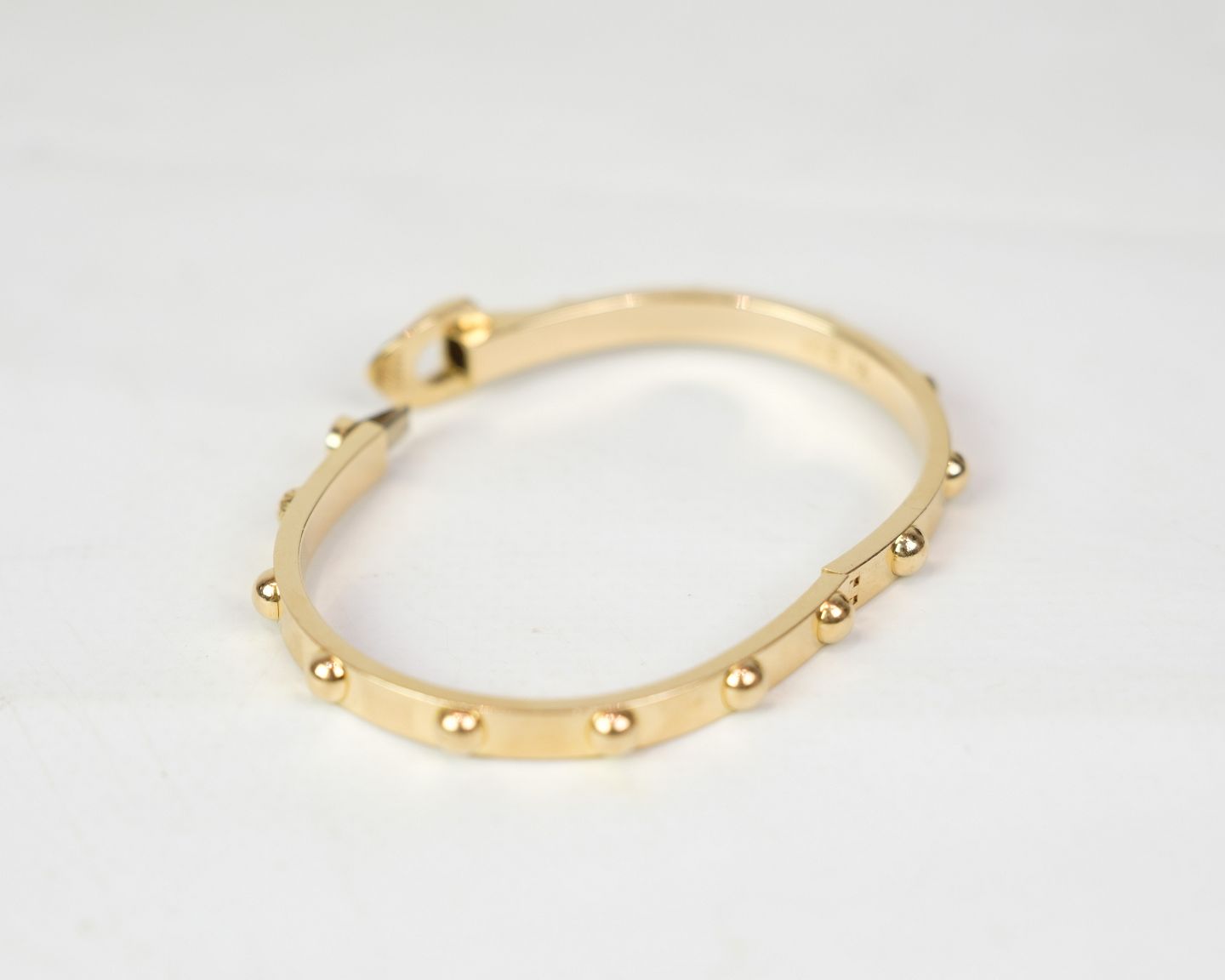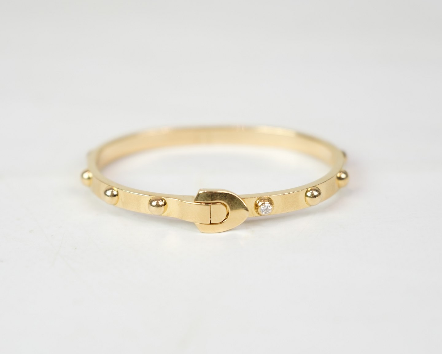 18 karat guld armbånd udsmykket med en diamant fra Louis Vuitton fremstillet i Frankrig. Armbåndet har 2 stempler 750 & 16, som indikere at armbåndet er lavet af 18 karat guld og størrelsen.