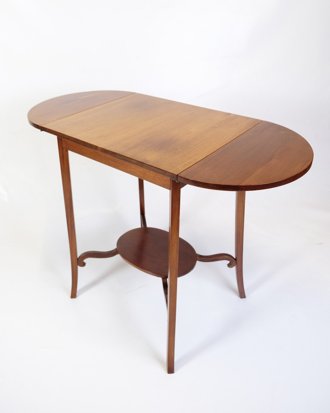 SolgtSidebord med klapper i mahogni, fremstillet i Danmark i 1960’erne. Bordet har to klapbare plader, der giver fleksibel bordplads, samt en underhylde til ekstra opbevaring. Udført i mahogni med fine buede ben og klassiske detaljer.