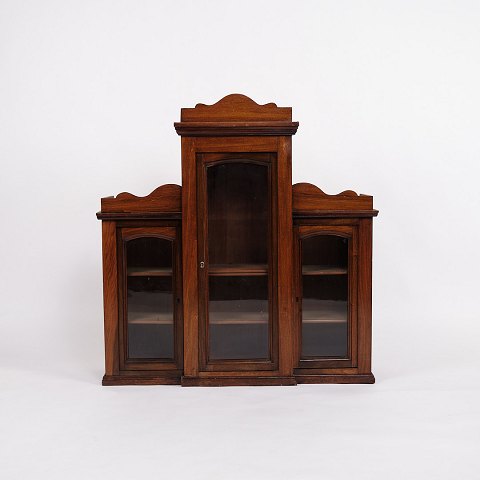 Ovalt piedestalskab fra omkring 1840’erne, udført i valnød og med håndpoleret overflade.