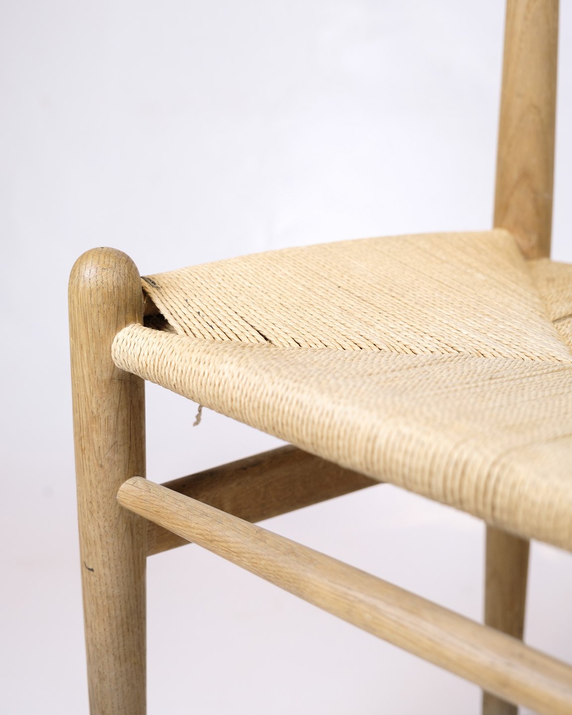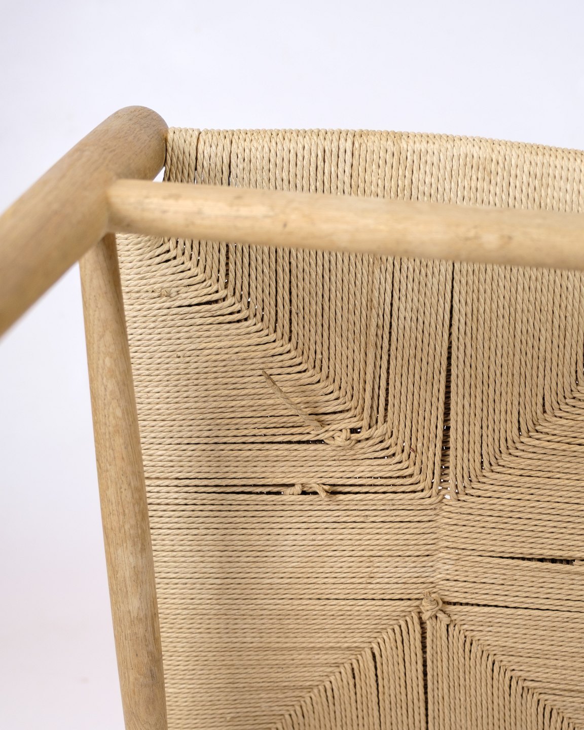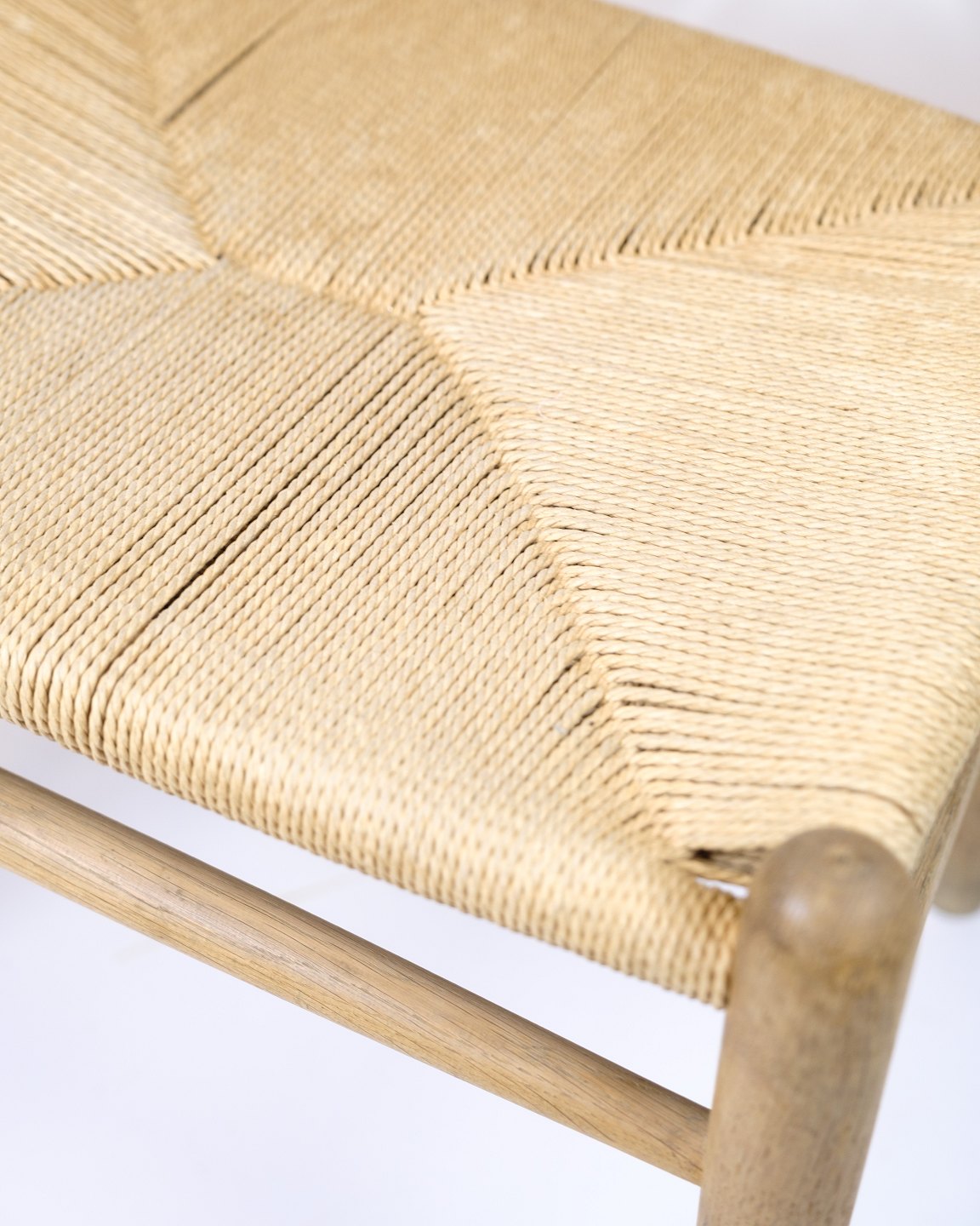 Stolen er udført i massivt egetræ med sæde i håndflettet papirgarn.