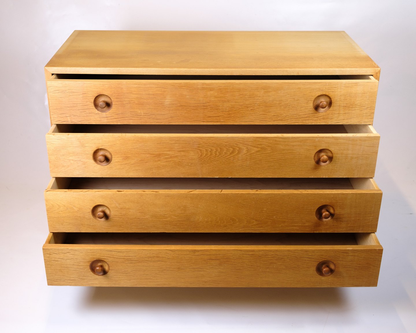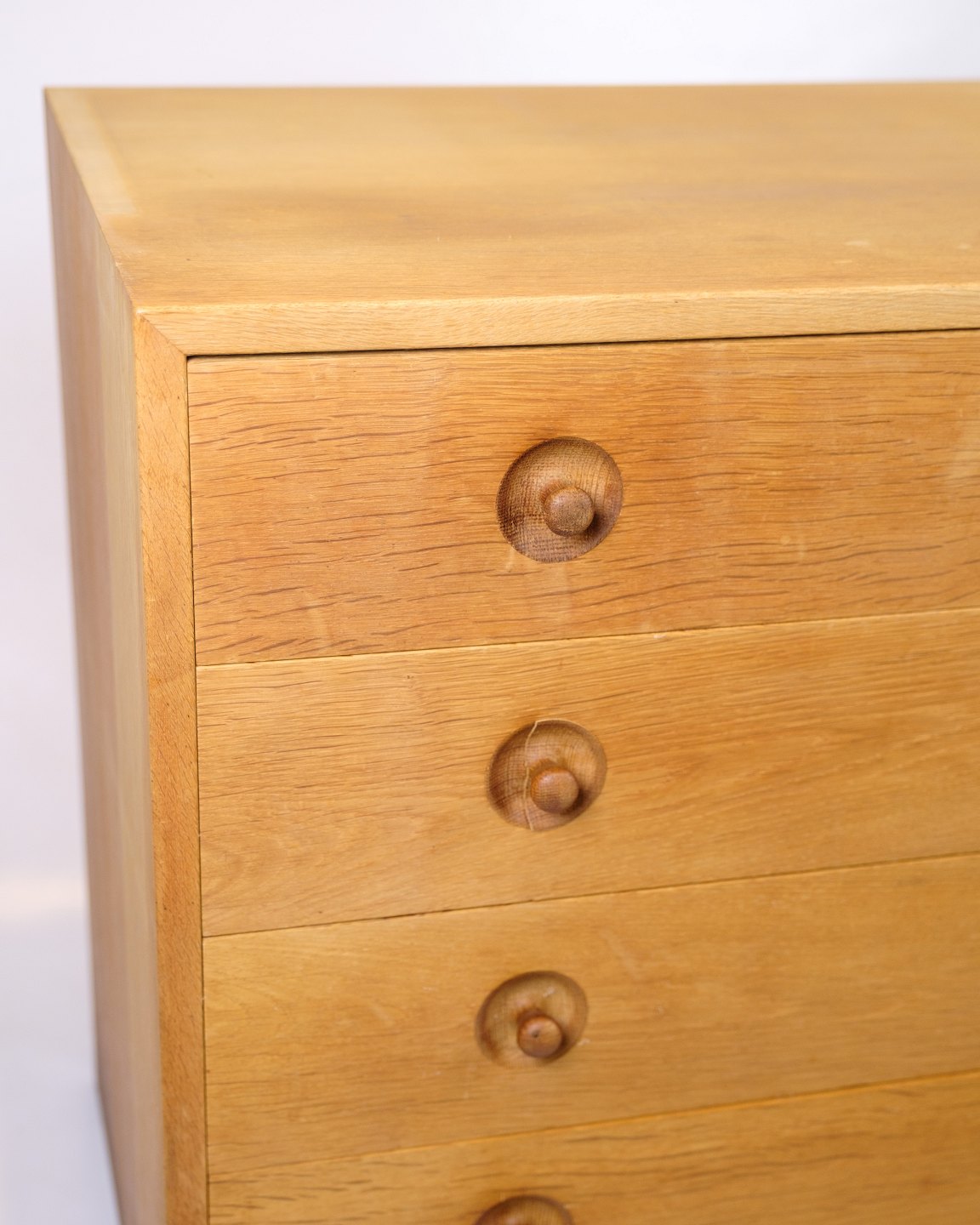 SolgtLav kommode i egetræ, designet af Hans J. Wegner for Ry Møbler i 1950’erne.