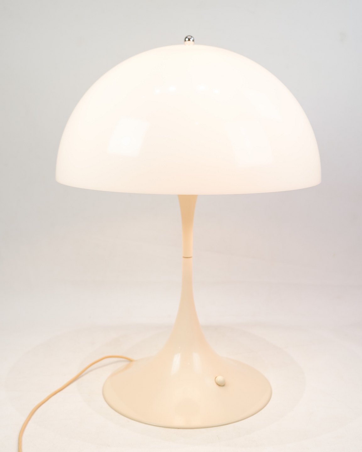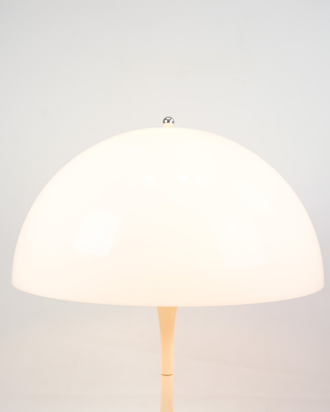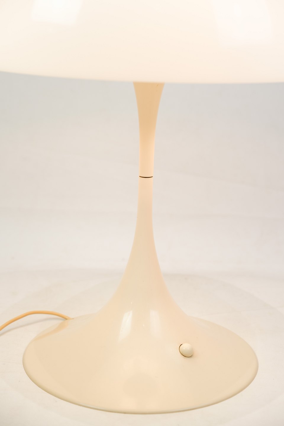 Bordlampe, model Panthella, designet af Verner Panton i 1971 og produceret af Louis Poulsen. Ældre udgave med 50cm i diameter.