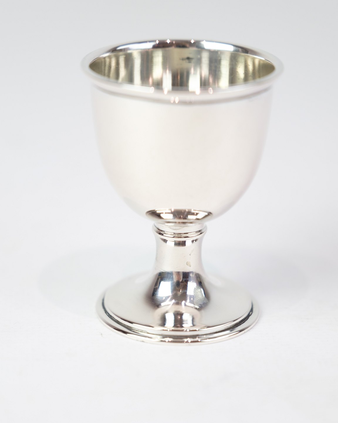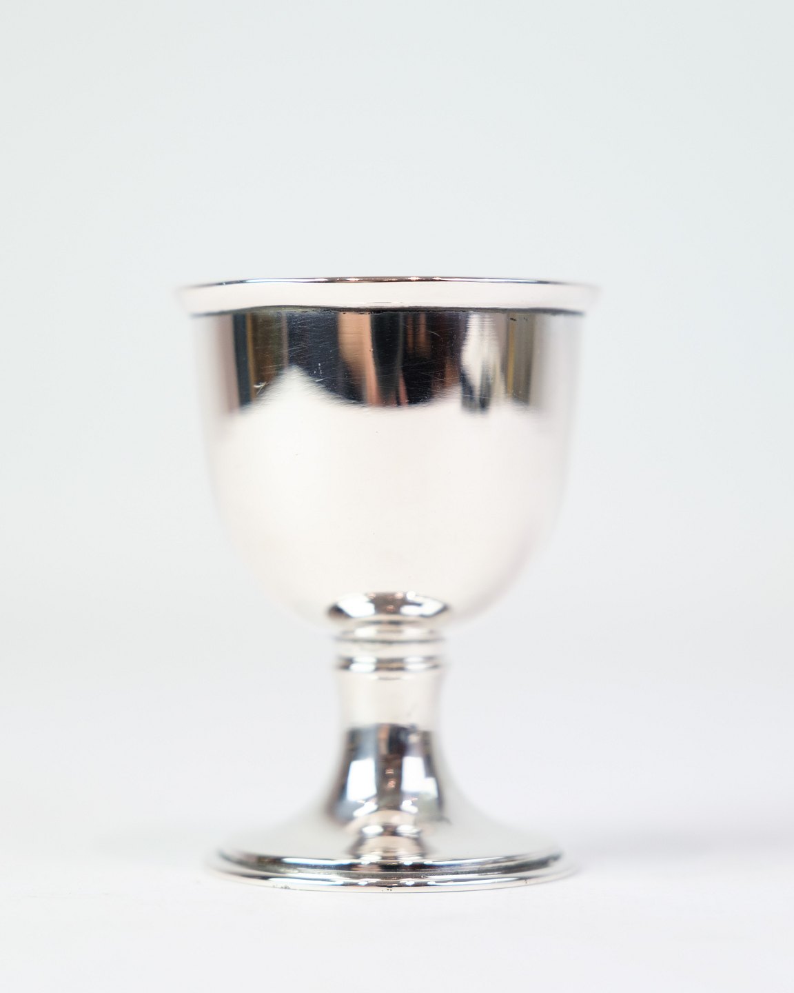 Æggebæger i ægte sølv. Enkelt design uden indgravering. Højde 6,3 cm, diameter 4,5 cm.