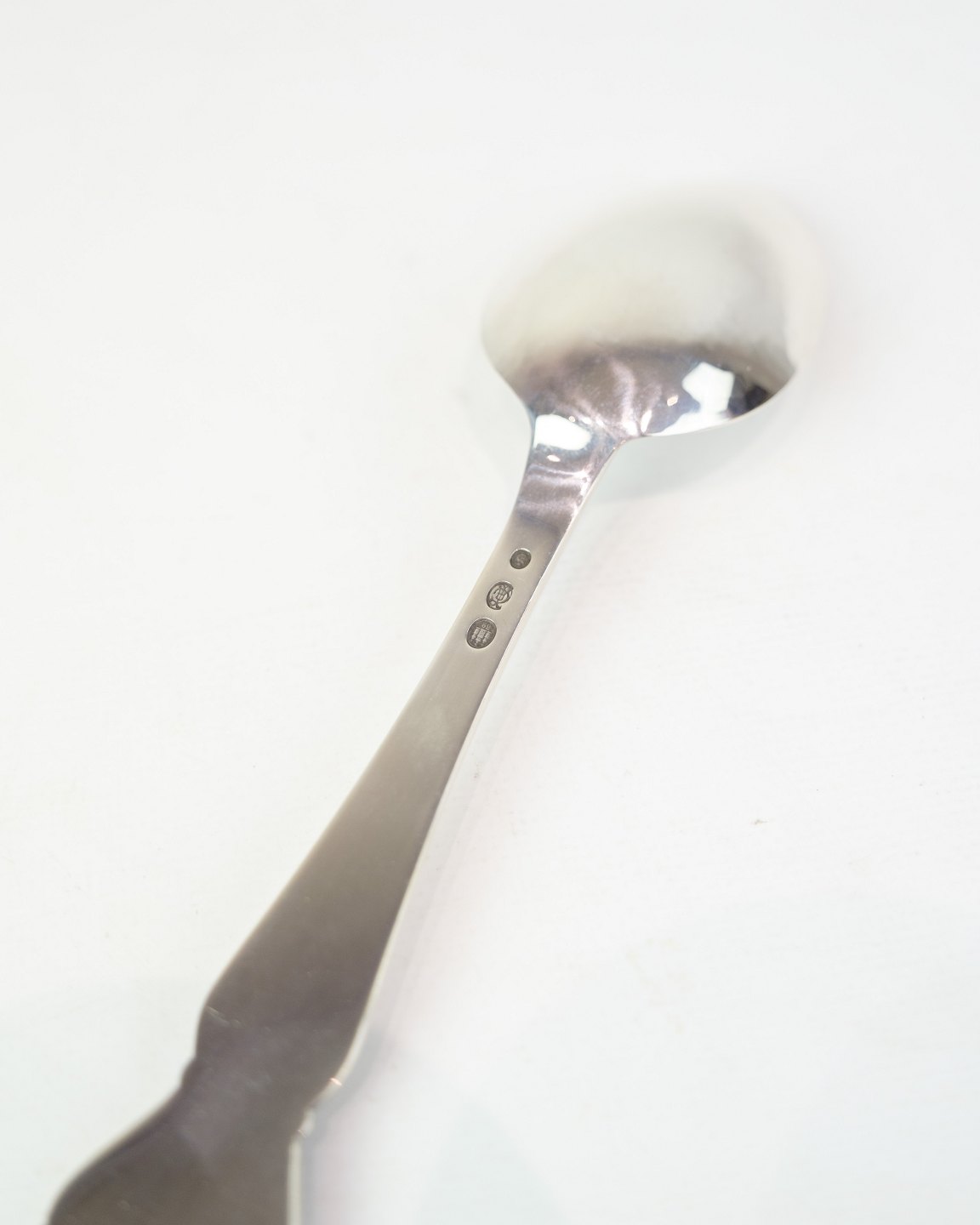 Spiseske fra A.C. Illum, København. Tretårnet sølv stemplet 825, ca. midt 1900-tallet. Længde 20 cm. Illum var kendt for høj kvalitet.