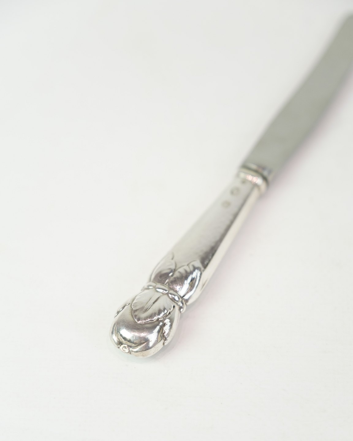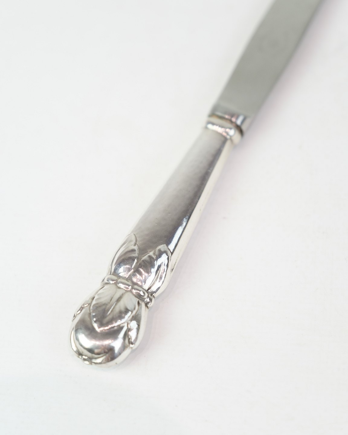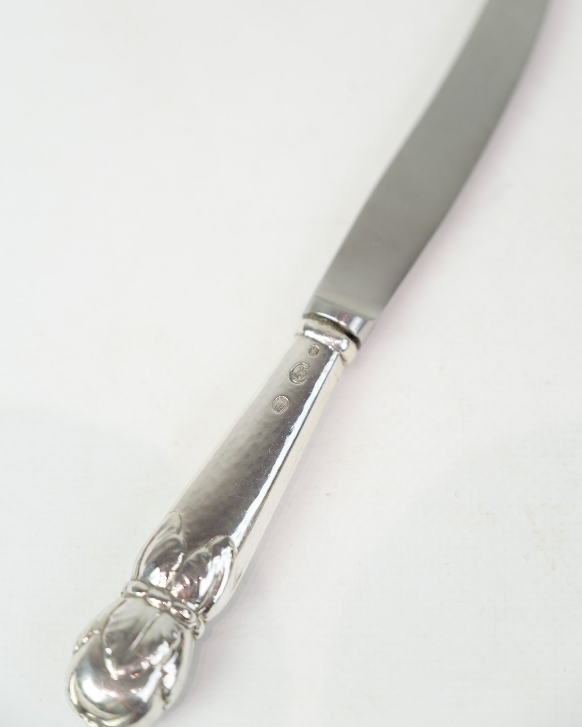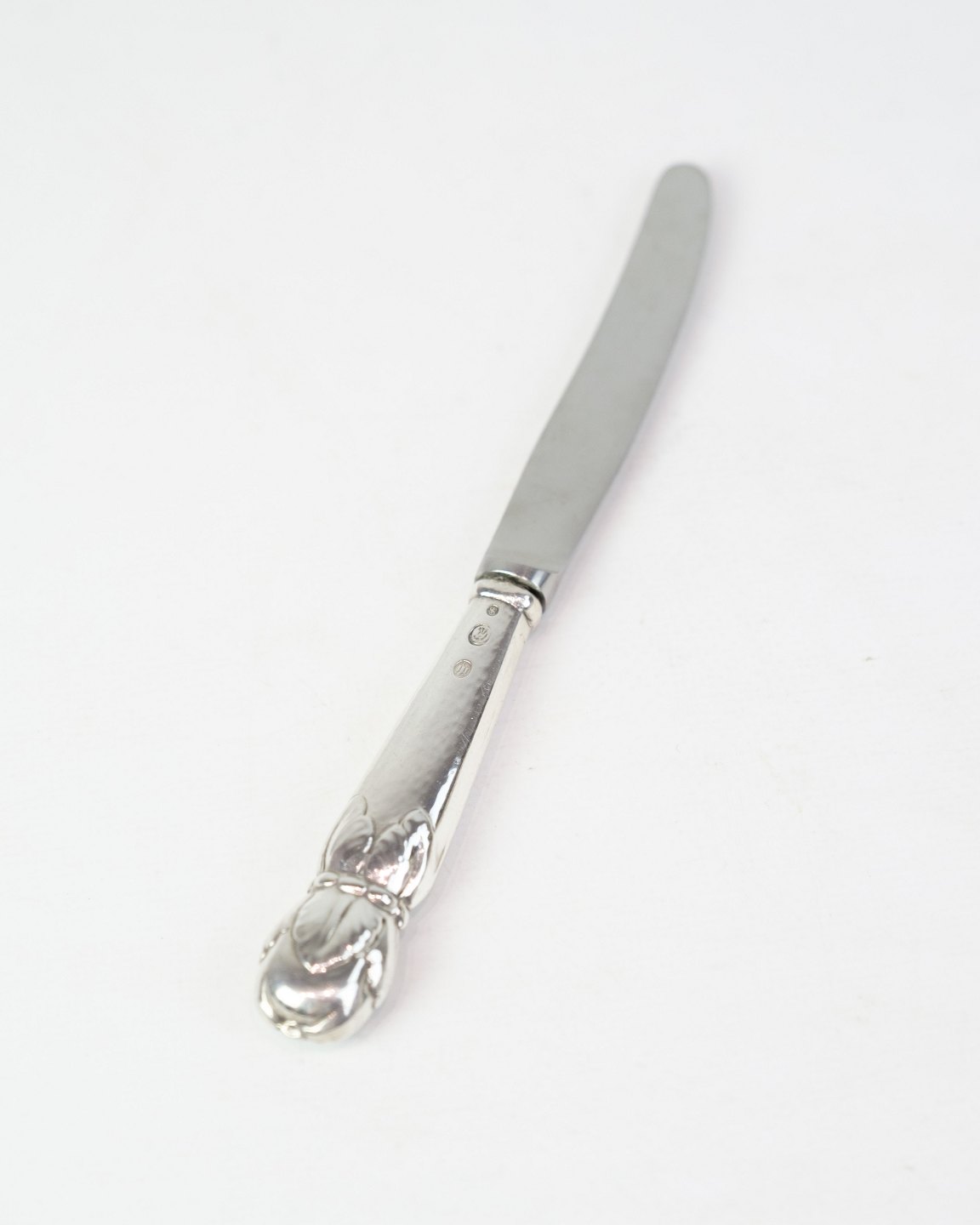 A.C. Illum frokostkniv i tretårnet sølv, stemplet 825. Fremstillet i København ca. midt 1900-tallet. Længde 18 cm. Klassisk dansk sølvhåndværk.