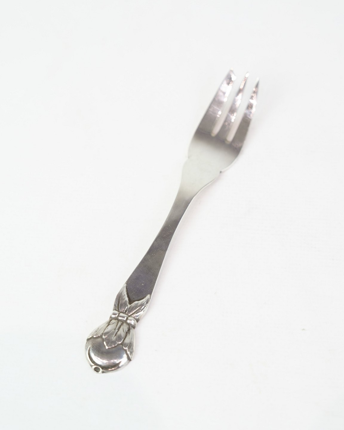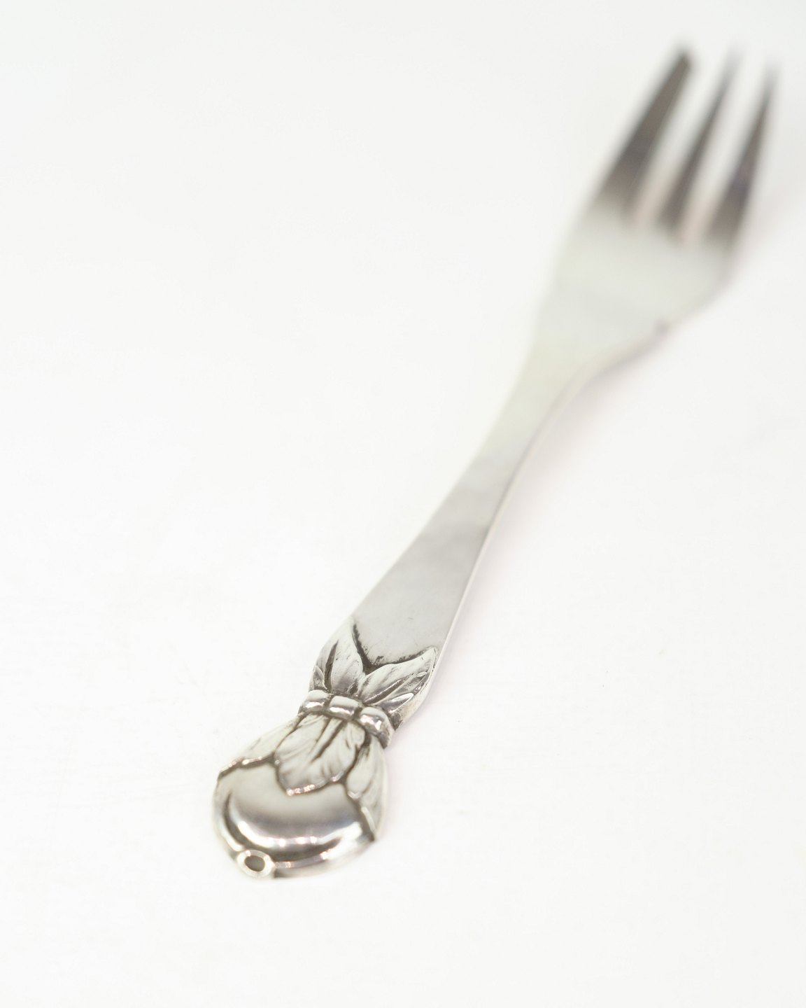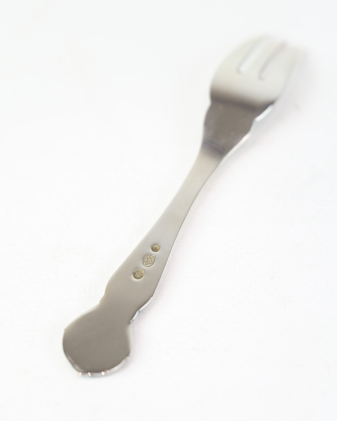 Kagegaffel fra A.C. Illum, København. Tretårnet sølv stemplet 825, ca. midt 1900-tallet. Længde 14 cm. Klassisk dansk sølvdesign i høj kvalitet.