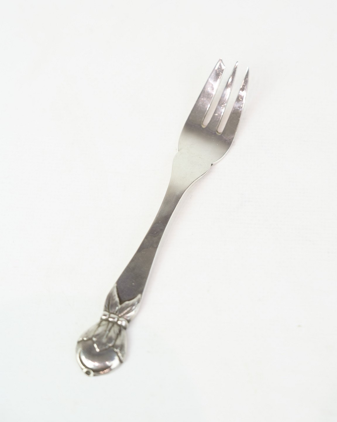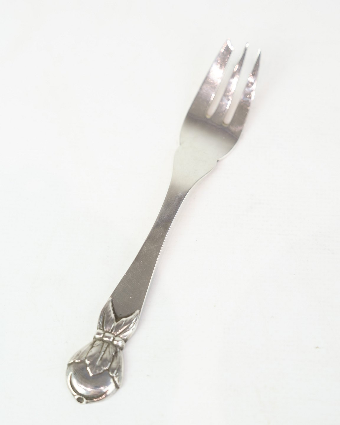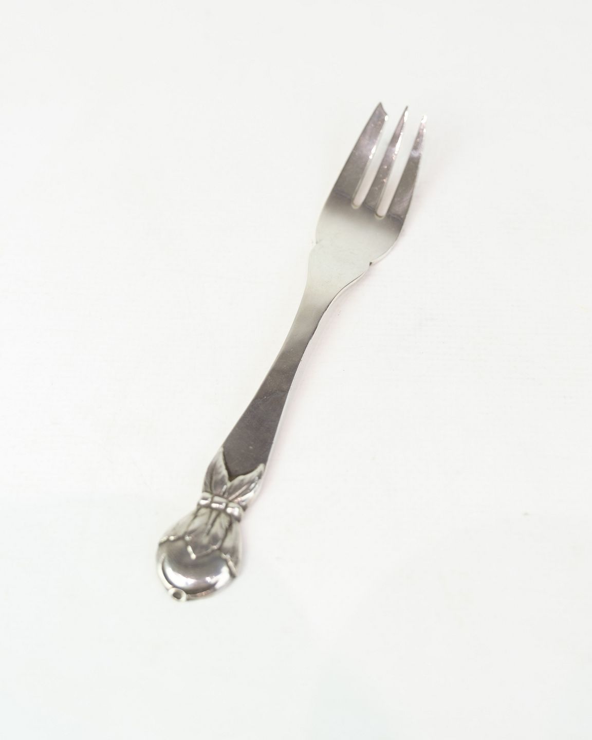 Kagegaffel fra A.C. Illum, København. Tretårnet sølv stemplet 825, ca. midt 1900-tallet. Længde 14 cm. Klassisk dansk sølvdesign i høj kvalitet.