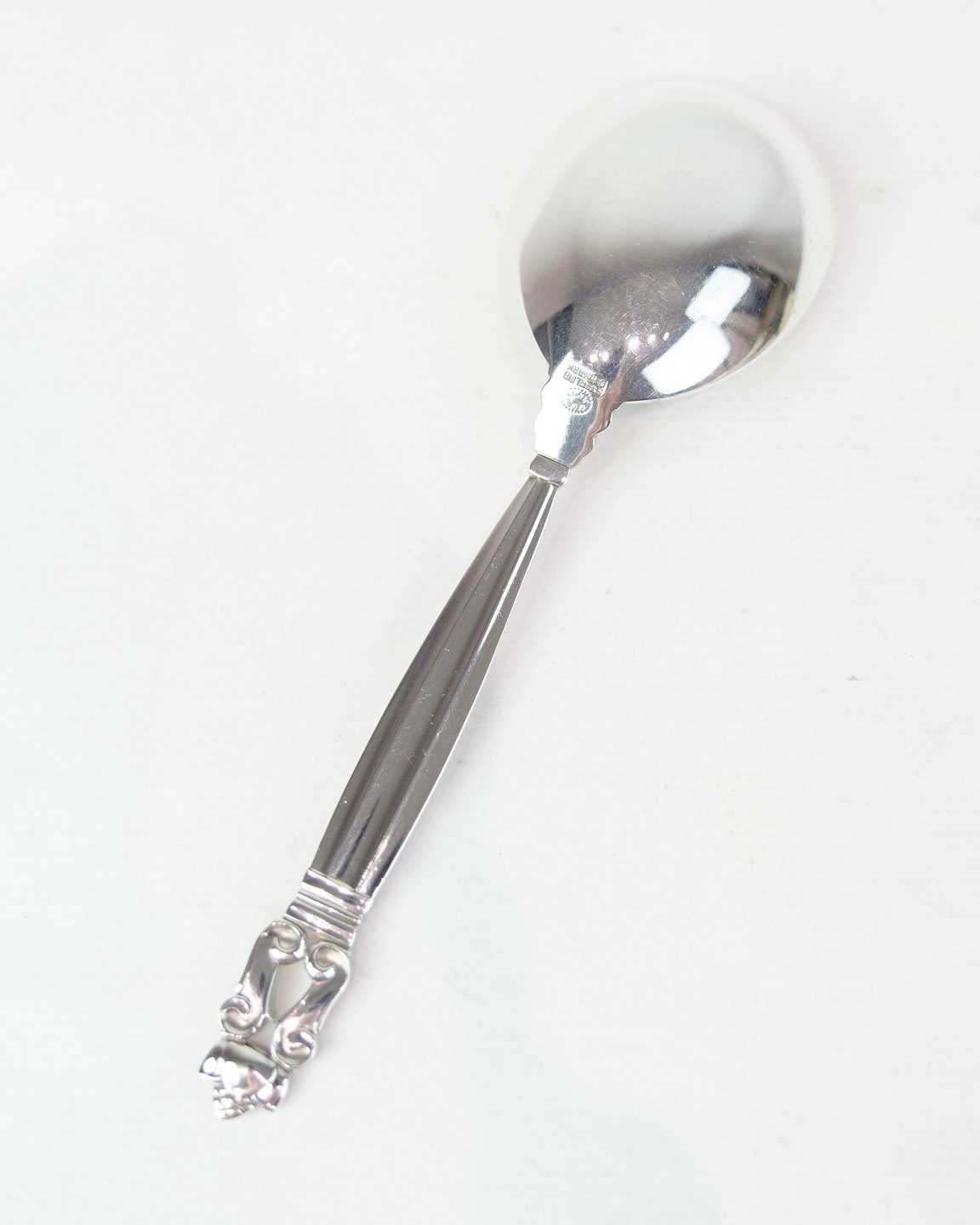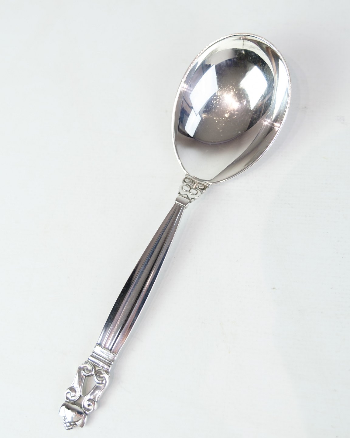Georg Jensen Marmeladeske i sølv, mønster Konge. Designet af Johan Rohde i 1915. Længde 16cm. Klassisk dansk sølvarbejde.