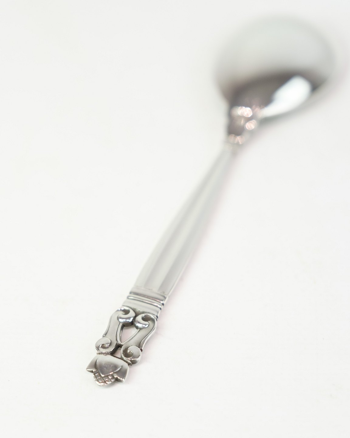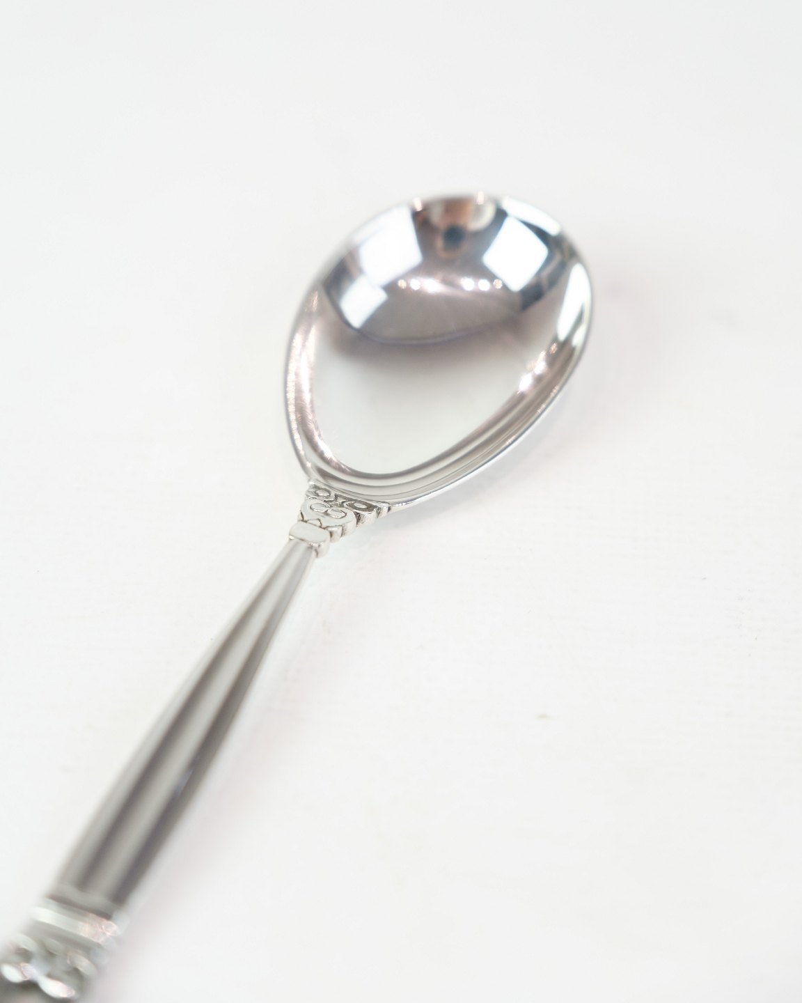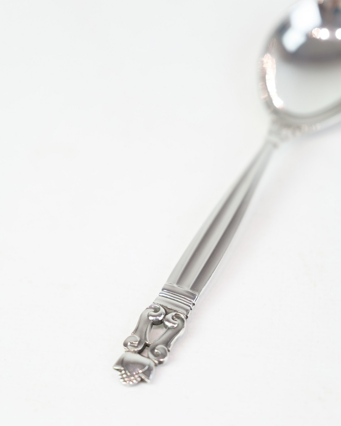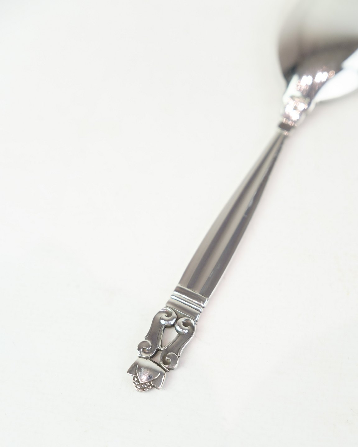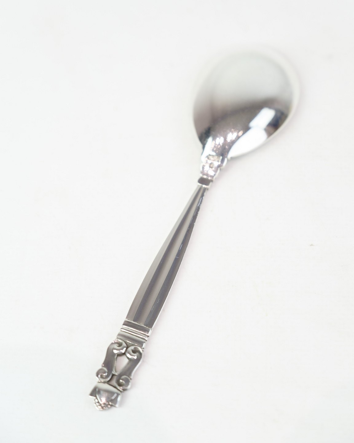 Georg Jensen serveringsske i Konge mønster. Sterling sølv, model No. 161. Design af Johan Rohde 1915. Længde 15 cm.