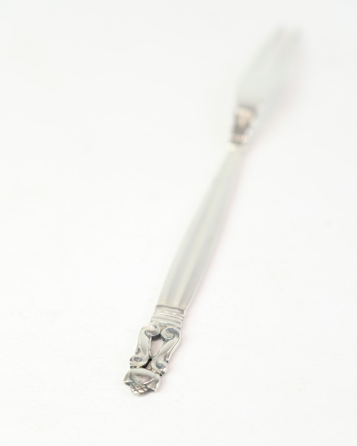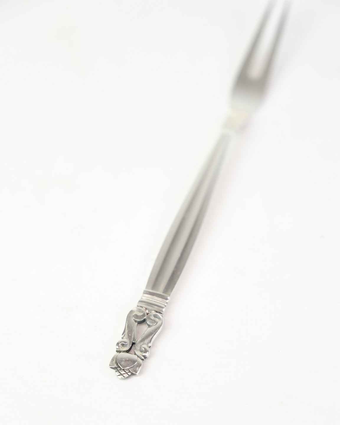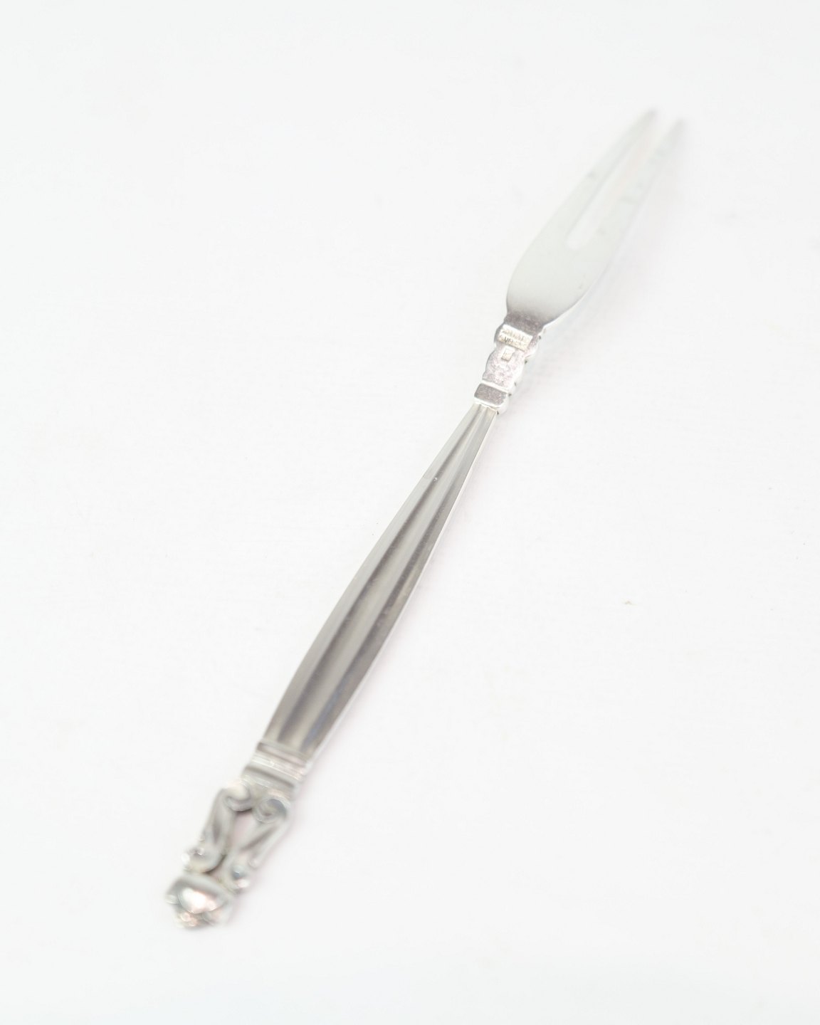 Georg Jensen pålægs-/stegegaffel i Konge mønster. Sterling sølv, design af Johan Rohde 1915. Længde 16,5 cm.