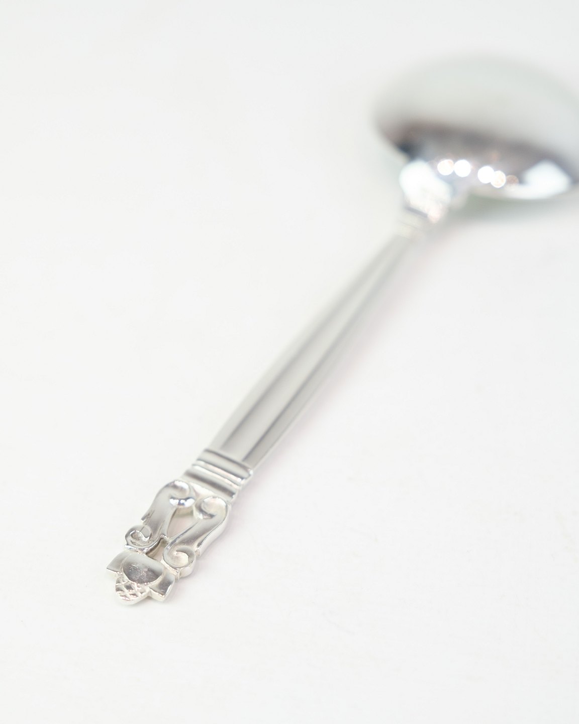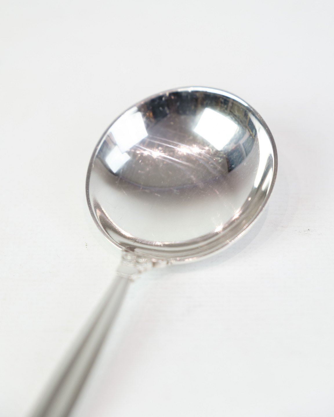 Georg Jensen suppeske i Konge mønster. Sterling sølv, design af Johan Rohde 1915. Længde 16 cm.