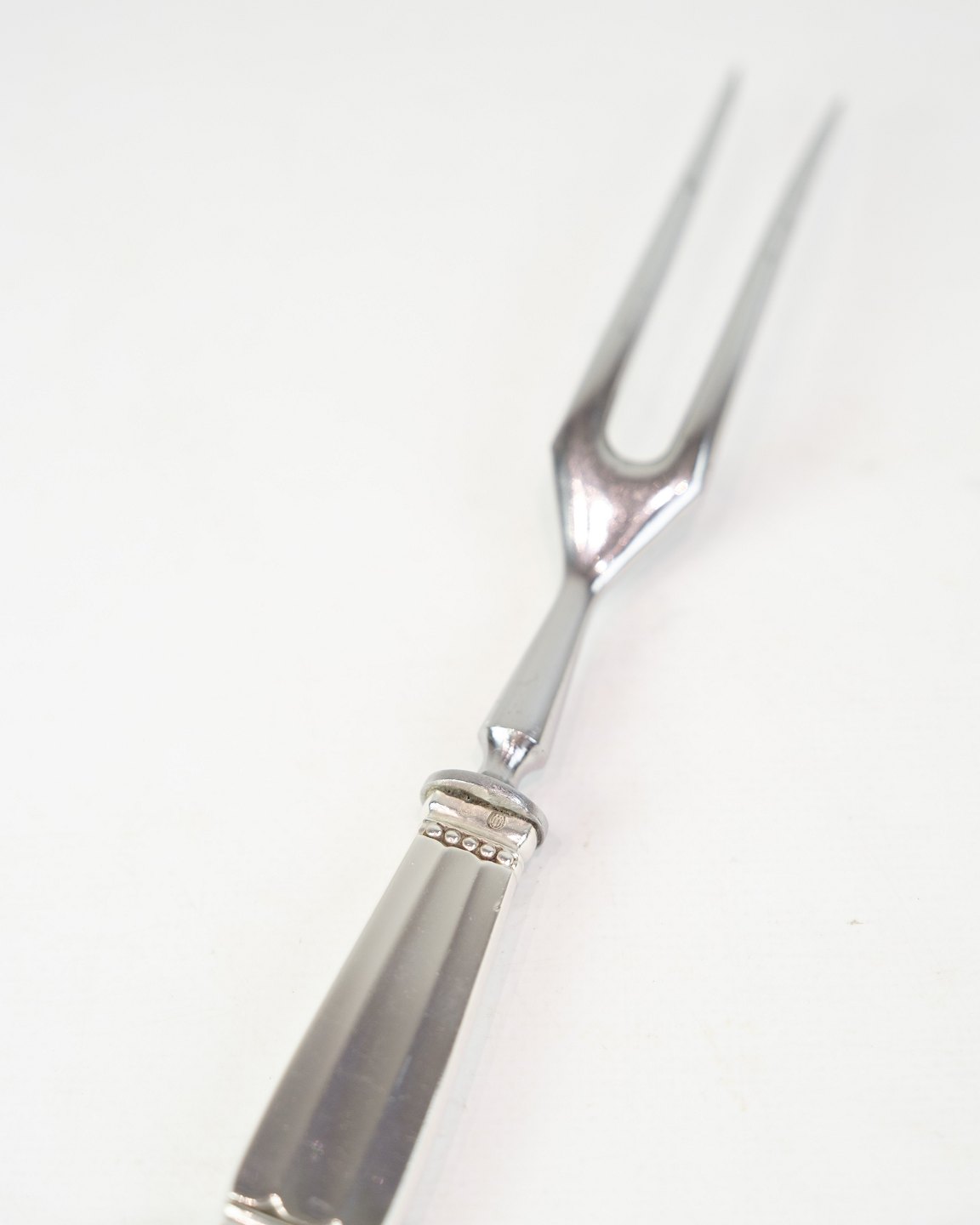 Georg Jensen forskærergaffel i sølv, mønster Konge. Designet af Johan Rohde i 1915. Længde 25 cm. Klassisk dansk sølvarbejde.