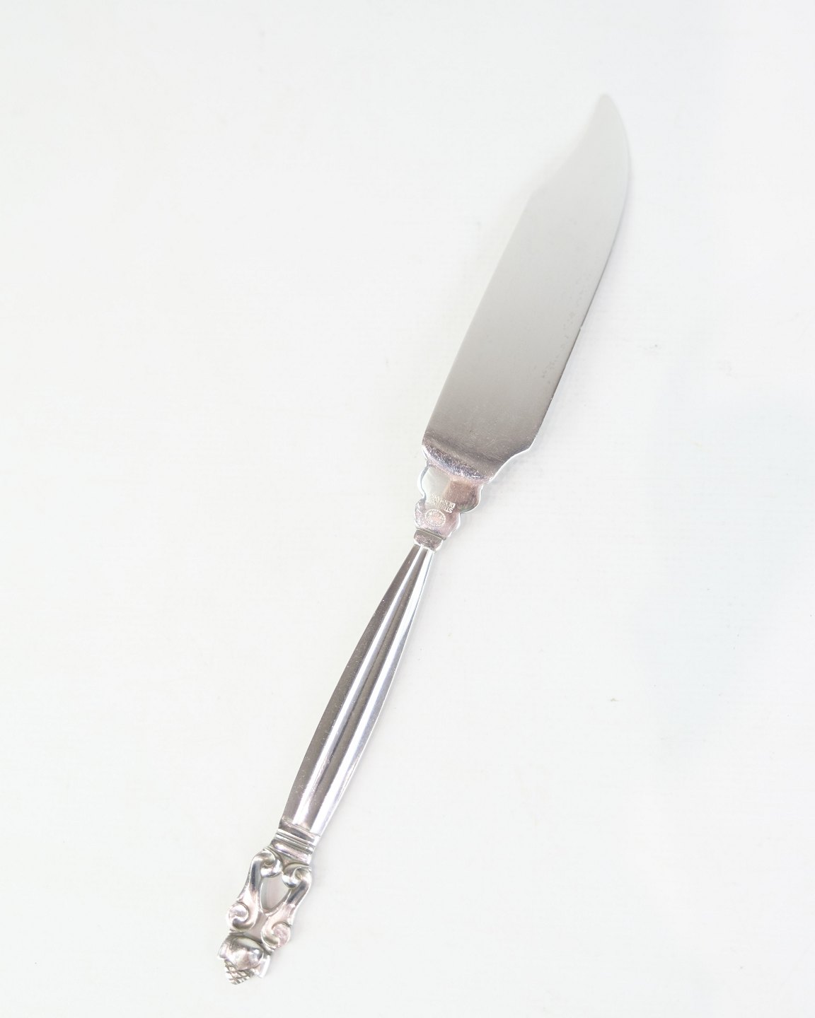 Georg Jensen fiskekniv i sterling sølv. Konge mønster, design af Johan Rohde 1915. Model No. 62. Længde 20,5 cm.