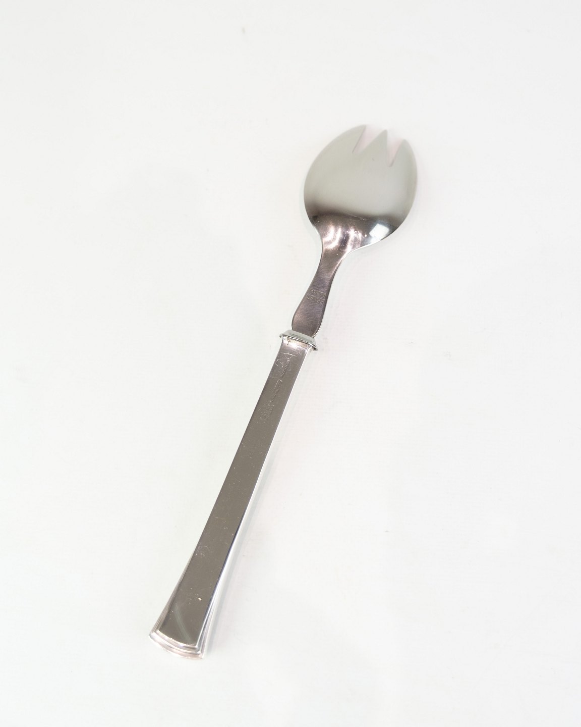 Evald Nielsen salatsæt i ægte sølv. Congo mønster No. 32. Længde 23 og 23 cm. Klassisk dansk sølvarbejde.