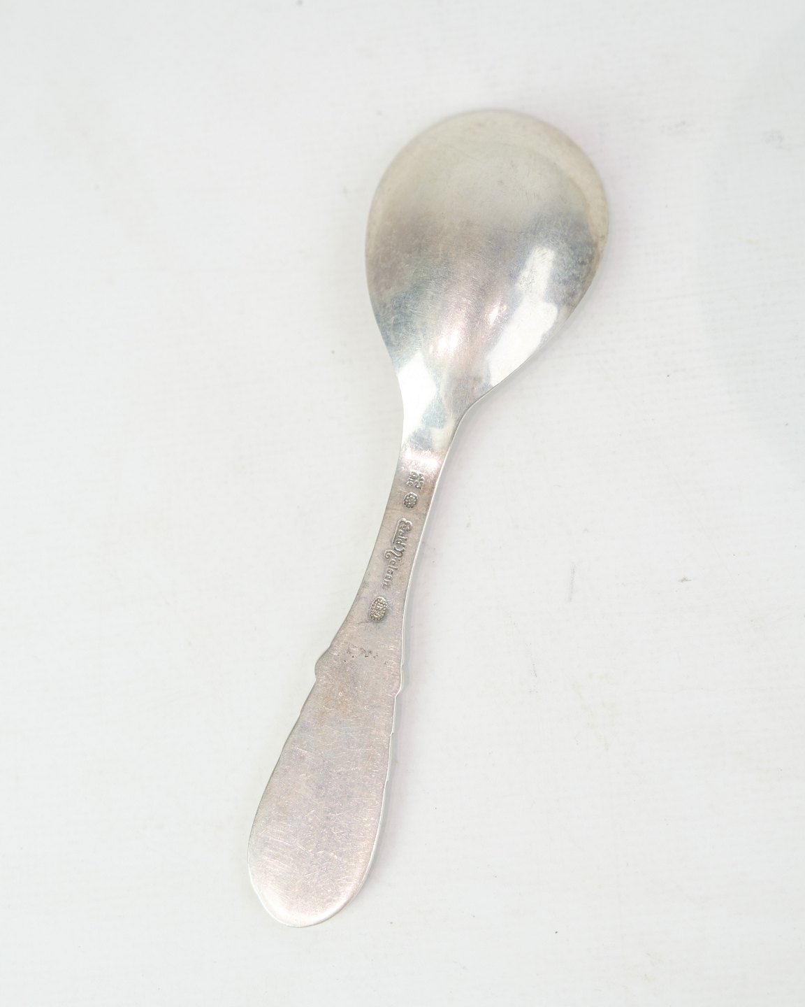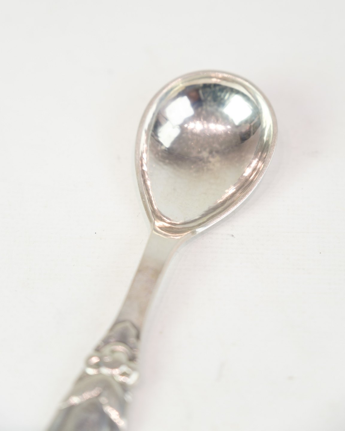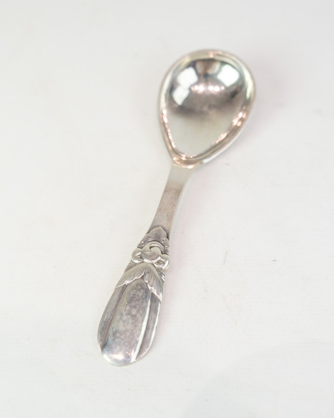 Evald Nielsen caviarske i ægte sølv. Hammerslået mønster, Model No. 16. Længde 14 cm. Klassisk dansk sølvarbejde.