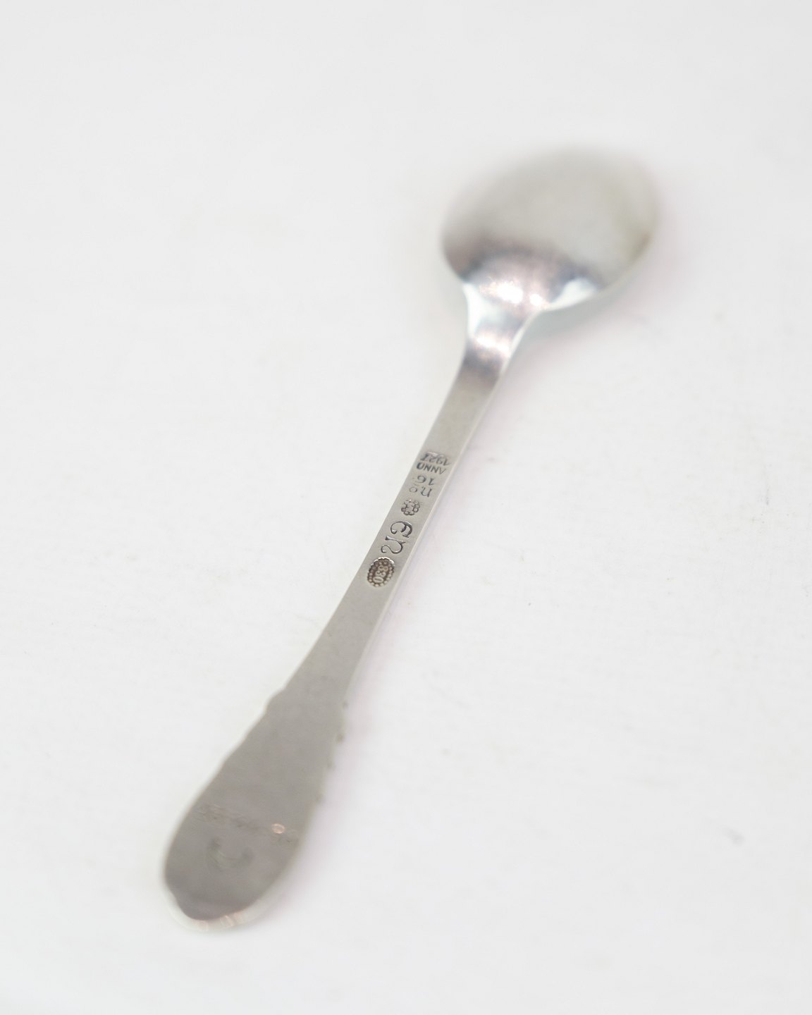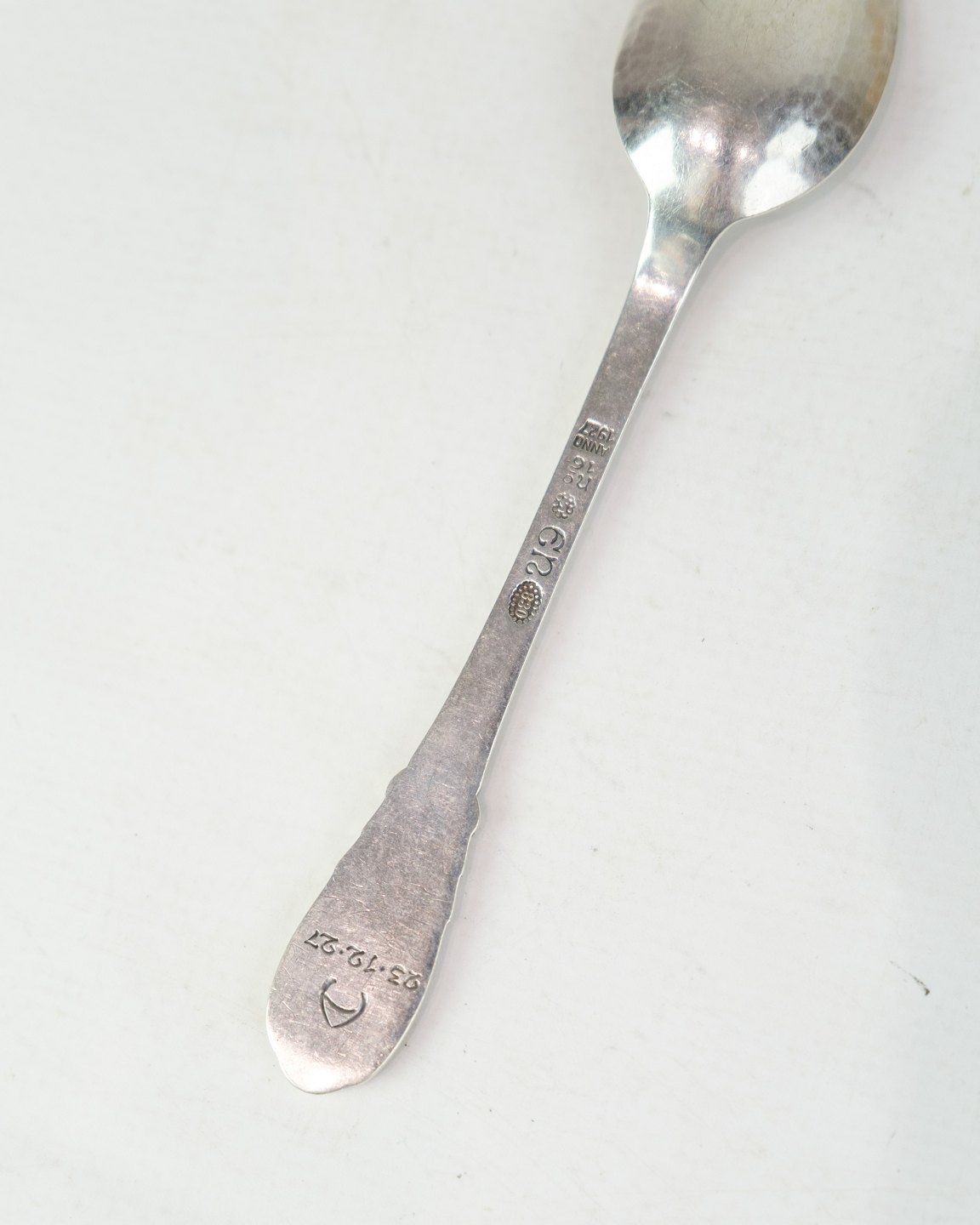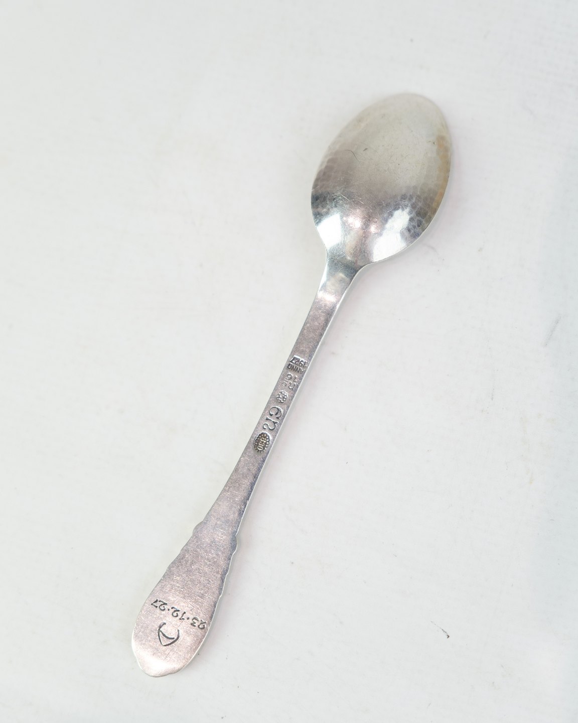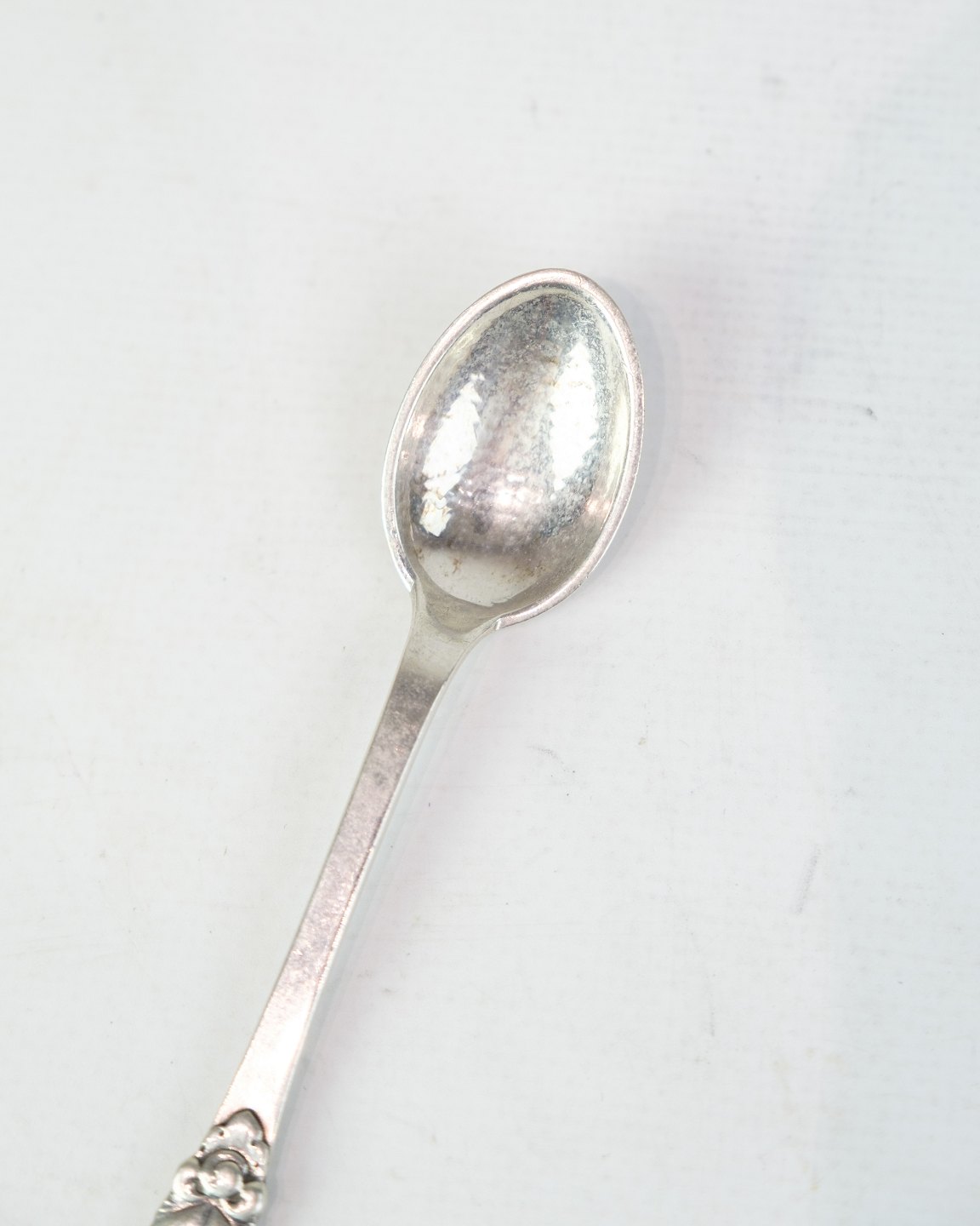 Evald Nielsen kaffeske i ægte sølv. Hammerslået mønster, Model No. 16. Længde 11,5 cm. Klassisk dansk sølvarbejde.