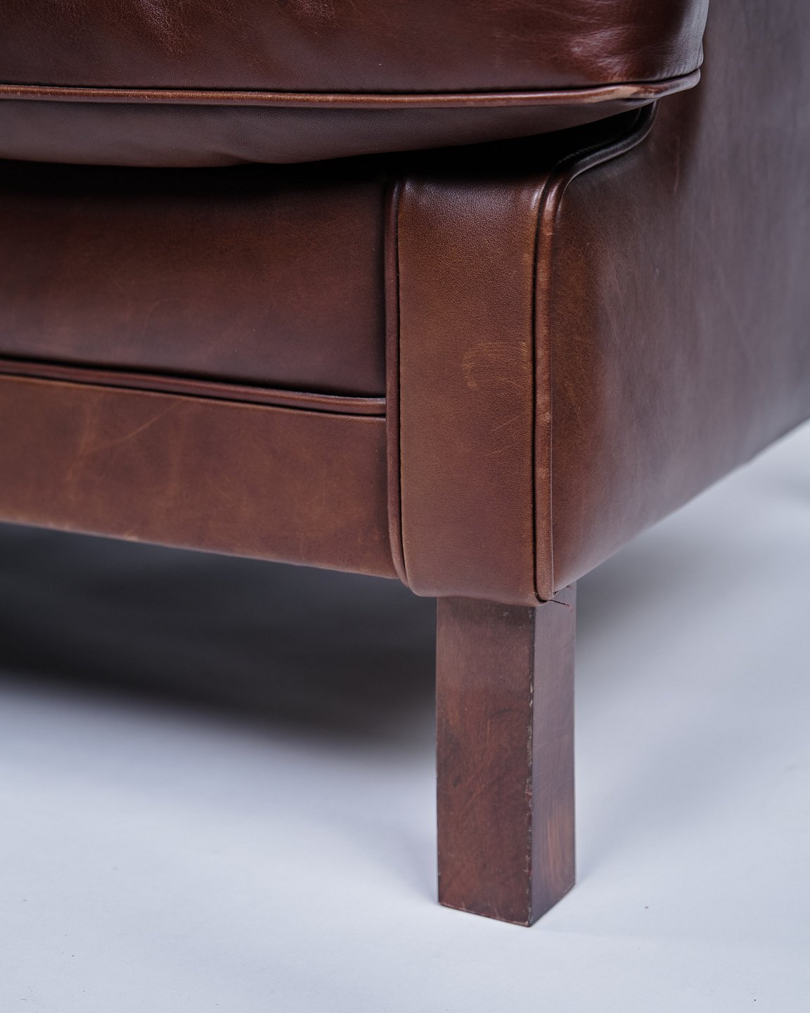 Dansk 3-personers sofa i brunt læder fra 1970’erne. Klassisk dansk design.