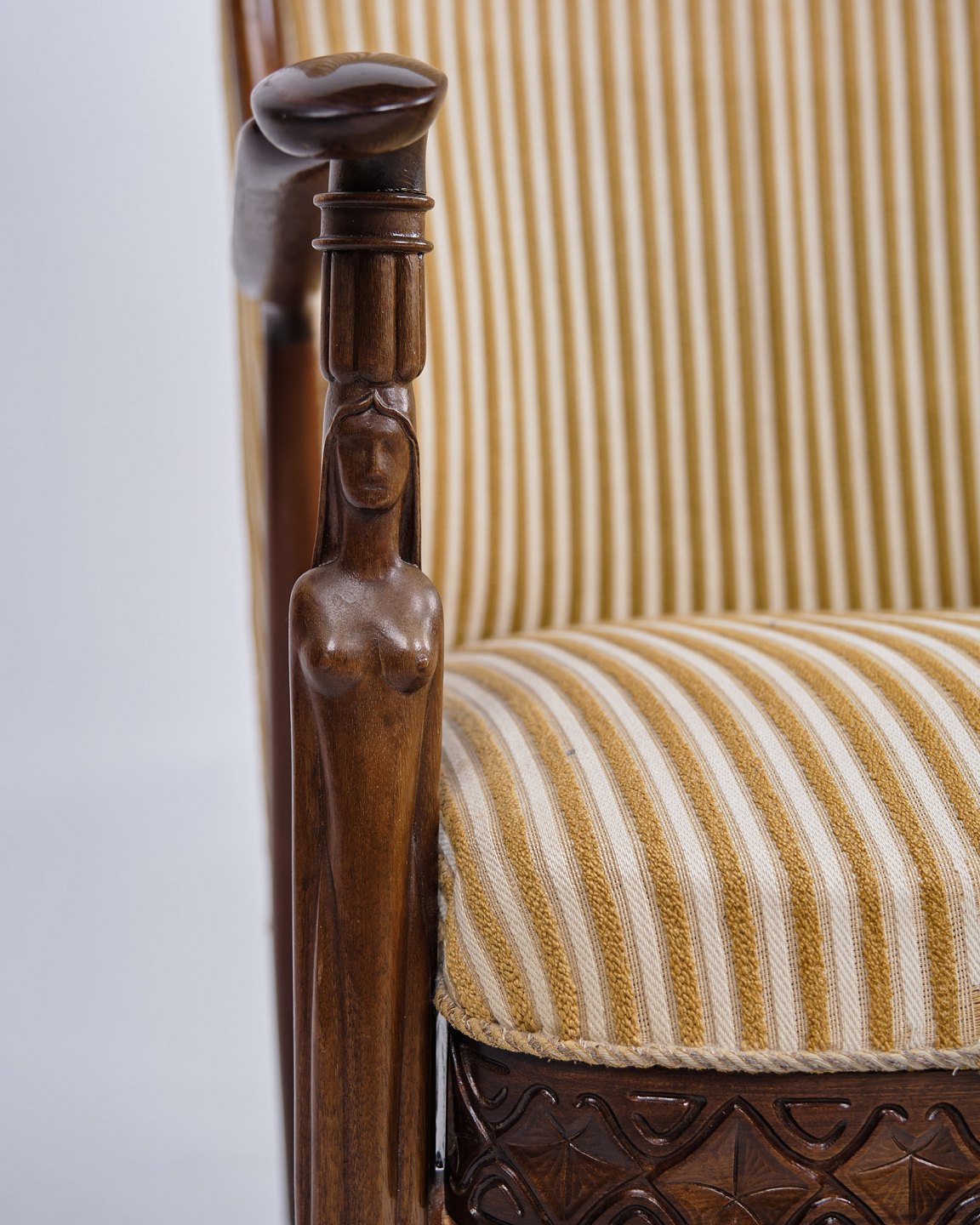 Kontakt os vedrørende prisØreklapstol fra 1930’erne. Palisander træ med stribet polstring. Klassisk snedkerarbejde.