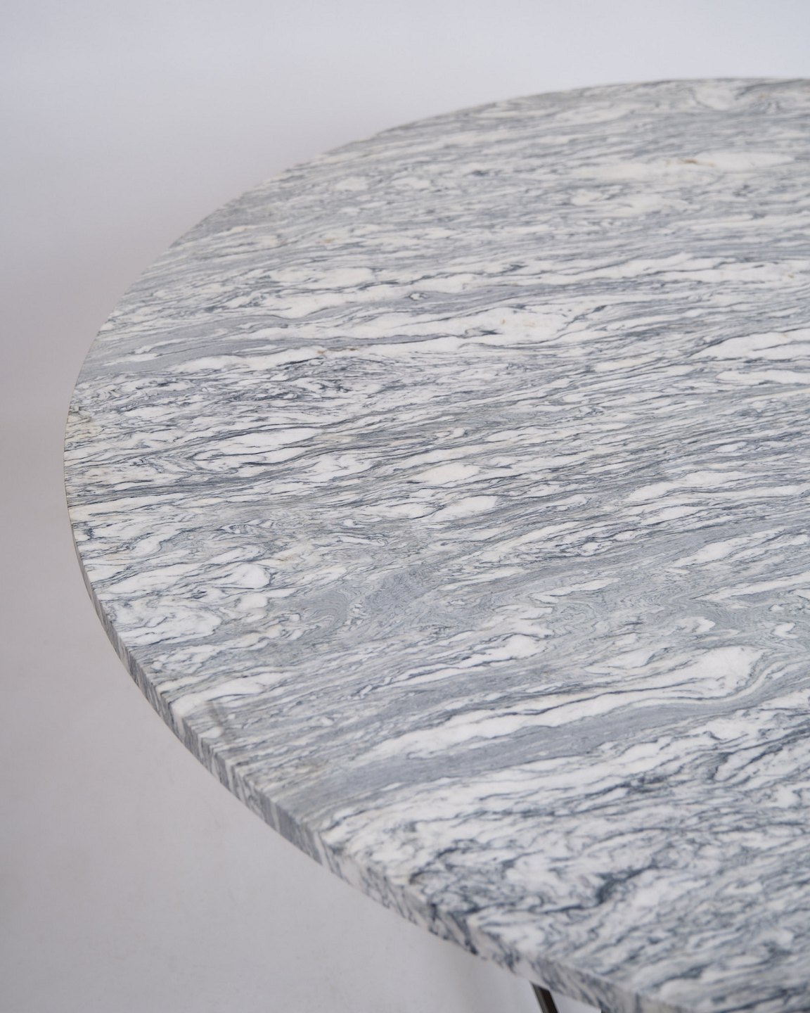Kontakt os vedrørende prisSjældent spisebord, model PK54, designet af Poul Kjærholm og produceret af E. Kold Christensen i 1960’erne. Bordet er udført med en massiv rund cipollini-marmorplade, båret af et stålstel, karakteristisk for Kjærholms minimalistiske formsprog.