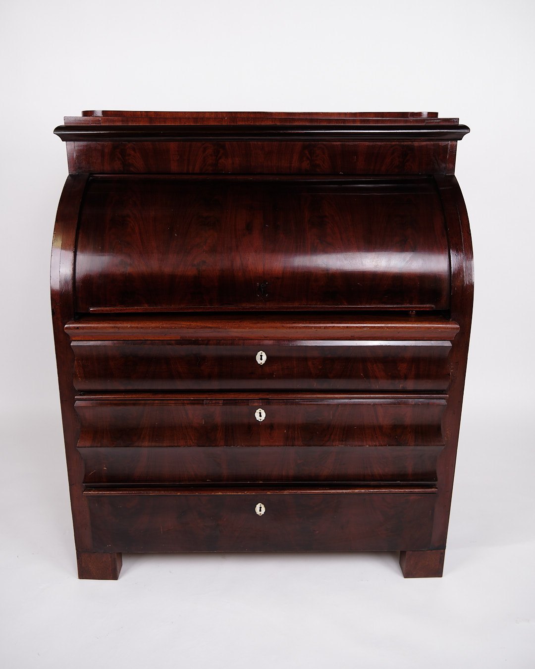 Antikt chatol i håndpoleret mahogni fra 1860’erne. Med perlemorsbeslag og benknopper.