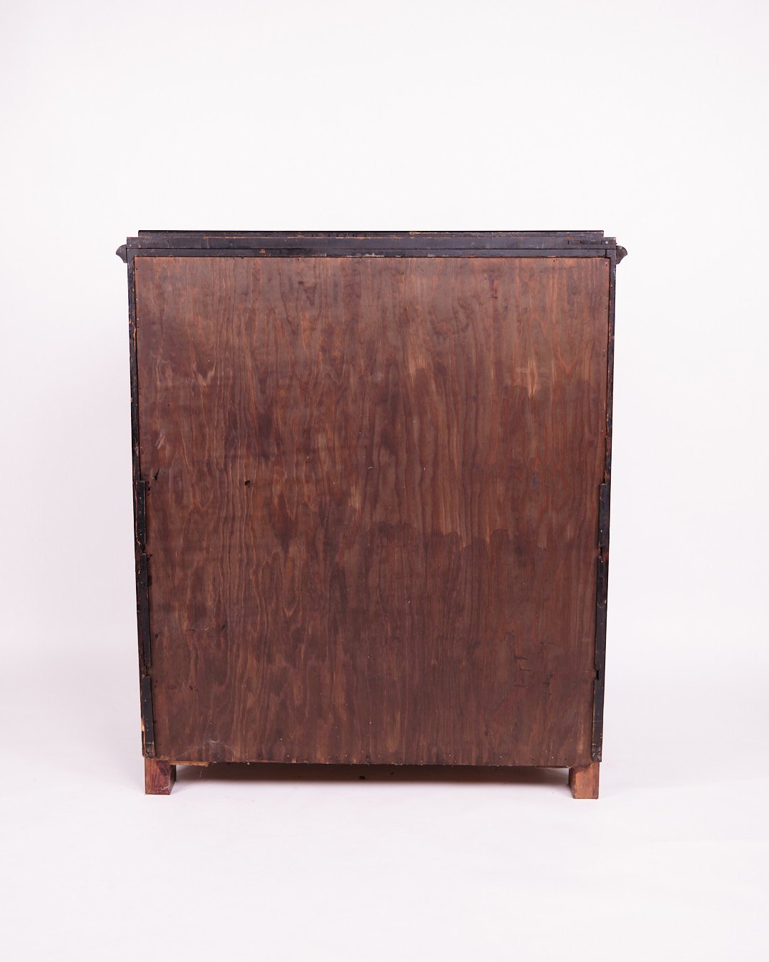 — Materiale: Håndpoleret mahogni med perlemorsbeslag og benknopper