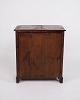 Lille antikt konsol-/entréskab fra 1880’erne. Mahogni og nøddetræ med runde ben.