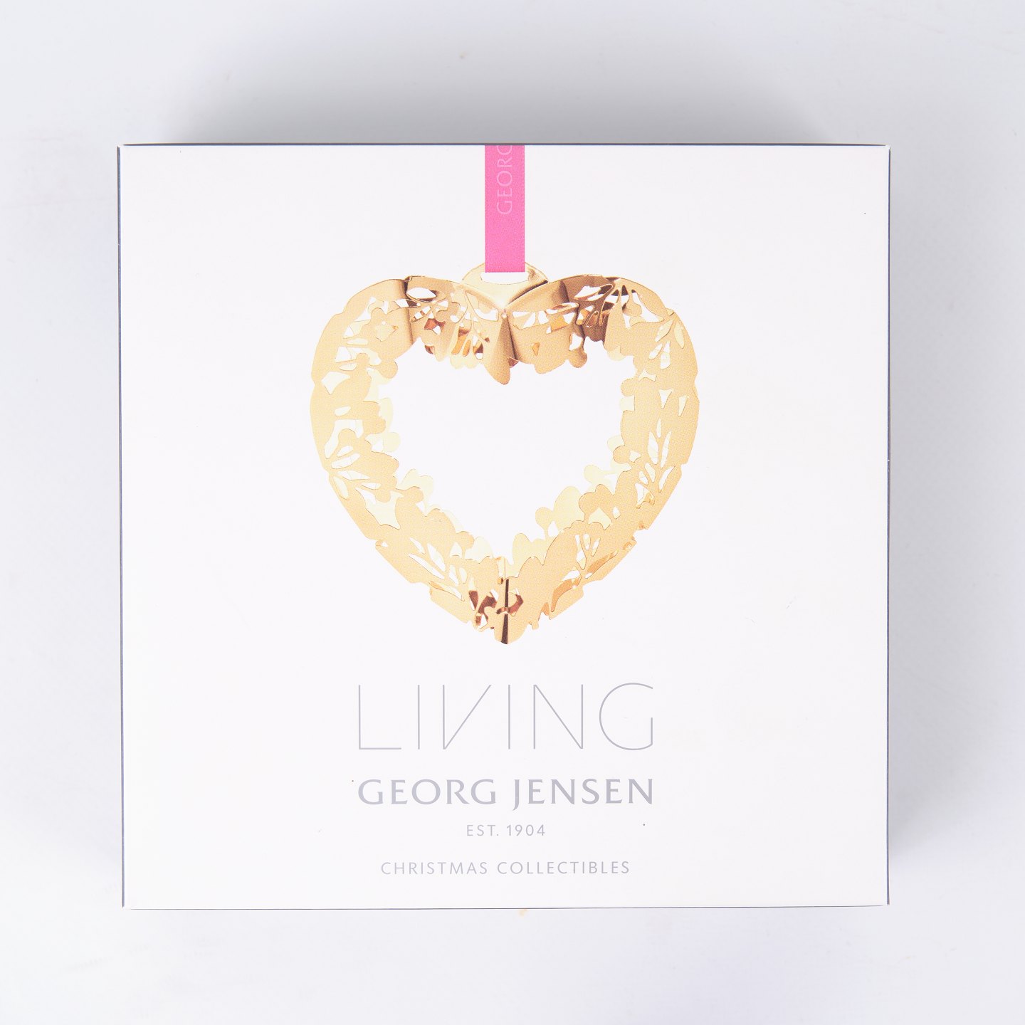 Georg Jensen juleuro 2015. Hjerte belagt med 24 kt. guld. H: 9 cm, B: 9 cm. Klassisk dansk julepynt og samlerobjekt.