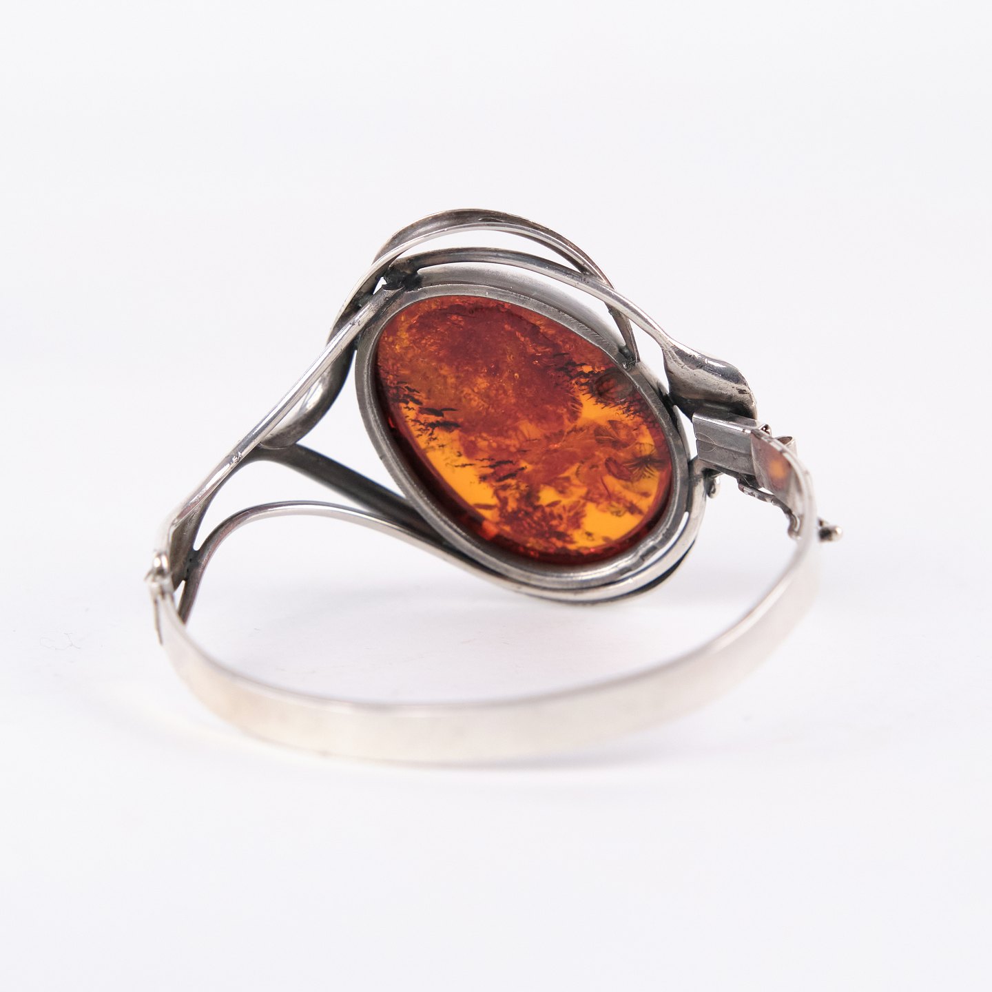 Armreif aus Silber mit Bernstein und Sicherheitsverschluss. Einzigartiges Schmuckdesign mit Bernstein.