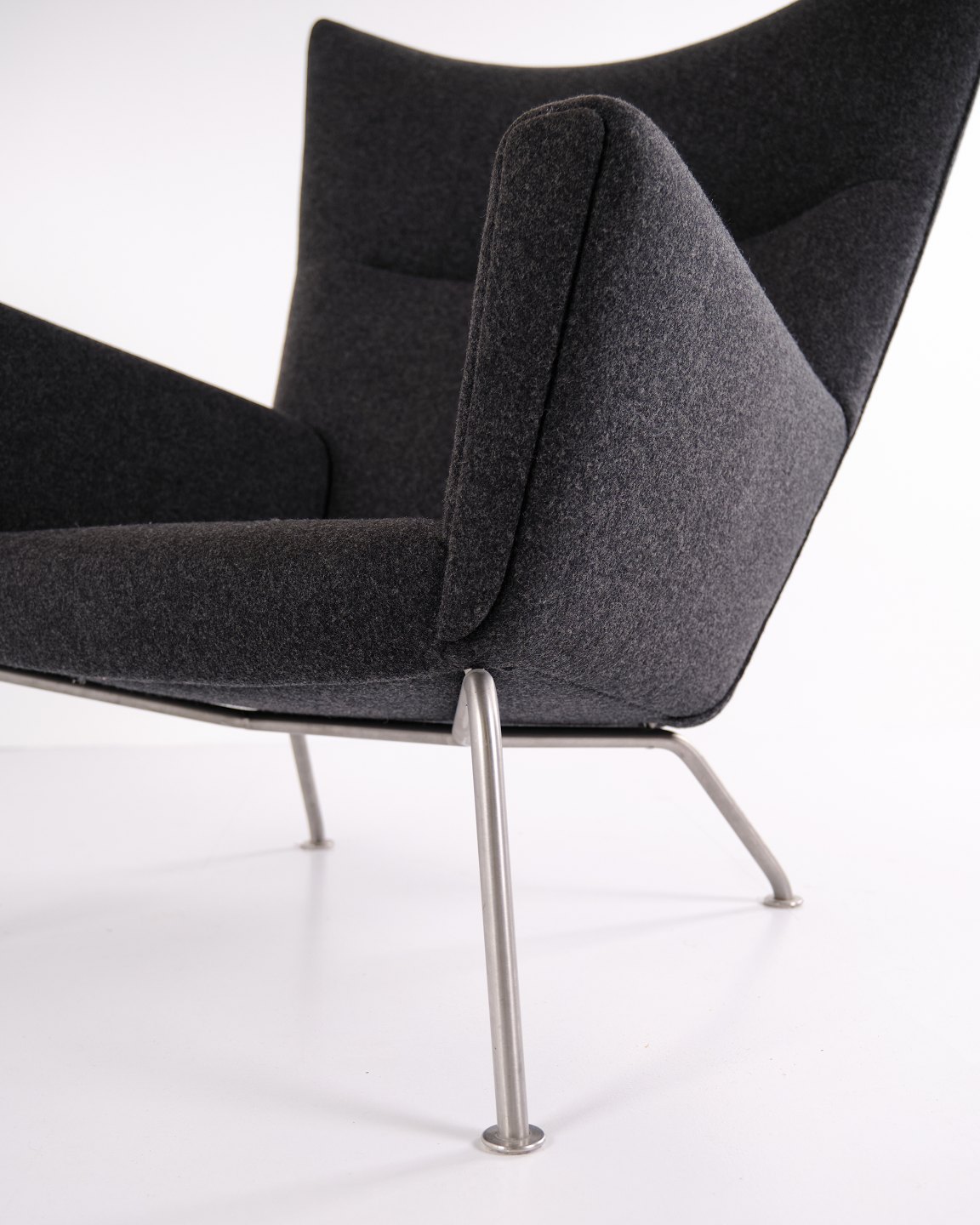 Wingchair – Hans J. Wegner – Model CH445 – Carl Hansen & Søn – Gråt Hallingdal – Med skammel