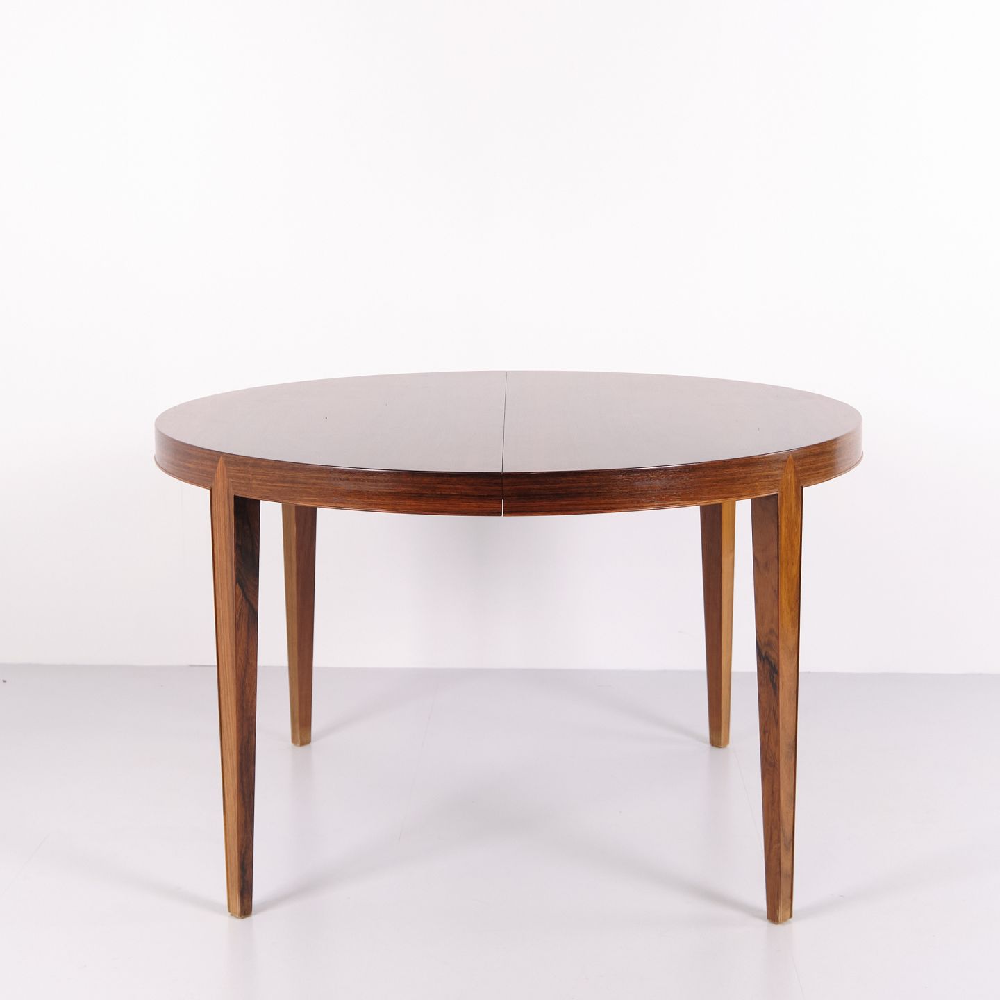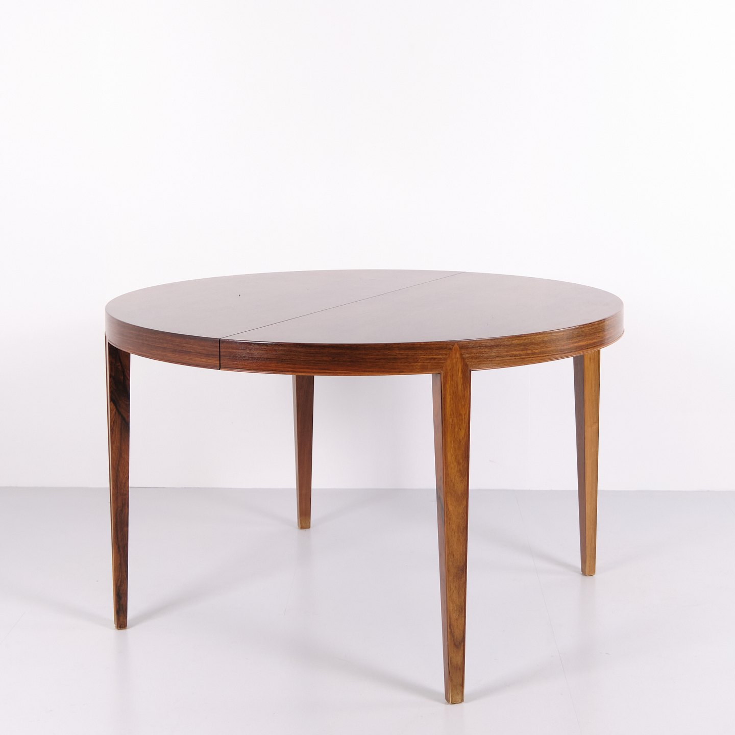 Severin Hansen rundt spisebord model 57 i palisander fra Haslev Møbelfabrik. Dansk design fra 1960’erne med udtræk og klassisk formsprog.