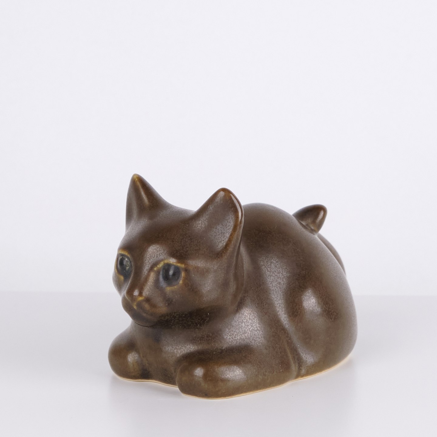 Kattefigur af Knud Basse udført som vase i brun glaseret keramik.