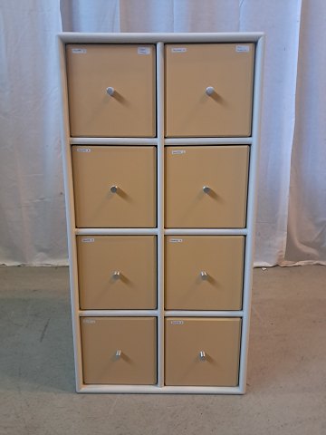 Den har brugsspor og der medfølger ikke ophæng.( skufferne passer til CDér)