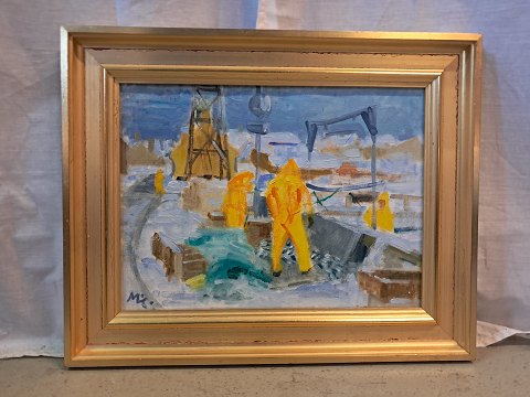 Maleri af Dragør Havn i guldmalet ramme, af : Mogens Amdi Thorsen (1924-2016)