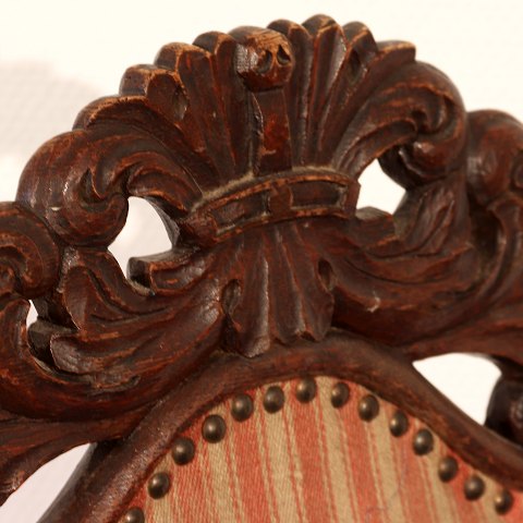 Højrygget stol i bejdset egetræ, OBS defekt sædepolstring,