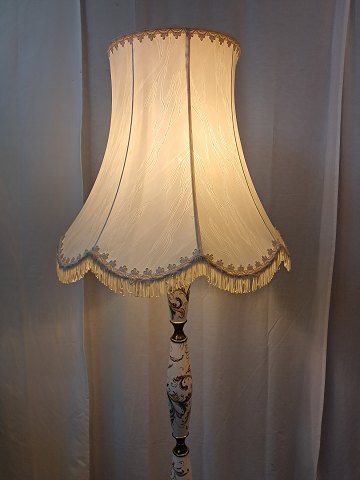 Gulvlampe i metal og pocelæn med skærm, fra 1980erne.